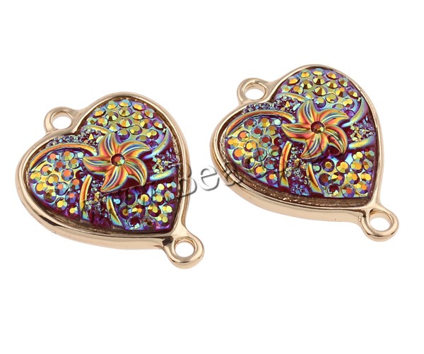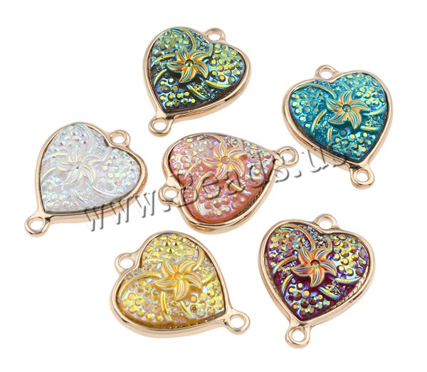 Resin Zinc Alloy Connector with Resin Heart gold color plated & colorful plated & 1/1 loop mixed colors nickel lead & cadmium free Approx 2mm Sold By Bag
