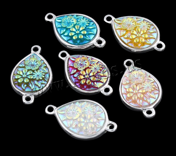 Resin Zinc Alloy Connector with Resin Teardrop silver color plated & colorful plated & 1/1 loop mixed colors nickel lead & cadmium free Approx 2mm Sold By Bag