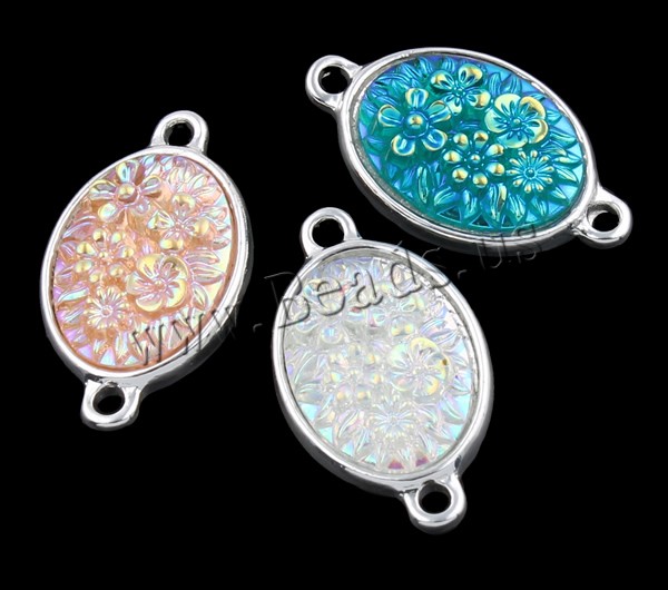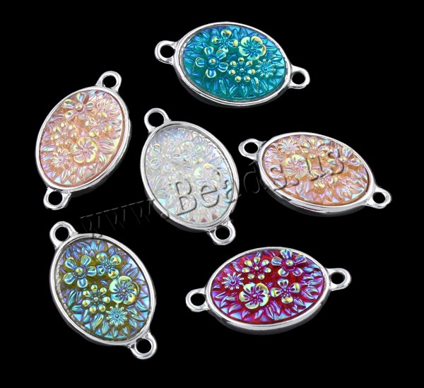 Resin Zinc Alloy Connector with Resin Flat Oval silver color plated & colorful plated & 1/1 loop mixed colors nickel lead & cadmium free Approx 2mm Sold By Bag