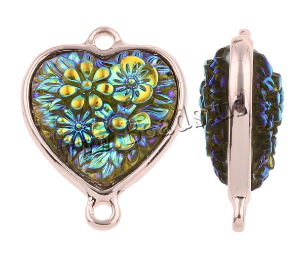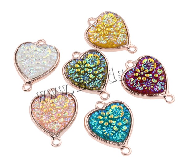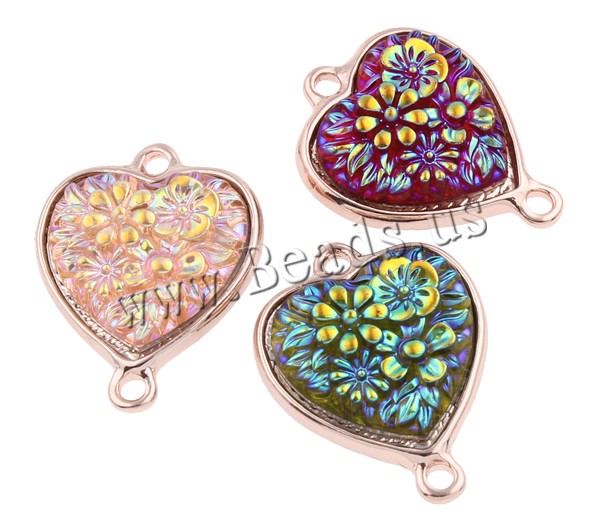 Resin Zinc Alloy Connector with Resin Heart rose gold color plated & colorful plated & 1/1 loop mixed colors nickel lead & cadmium free Approx 2mm Sold By Bag