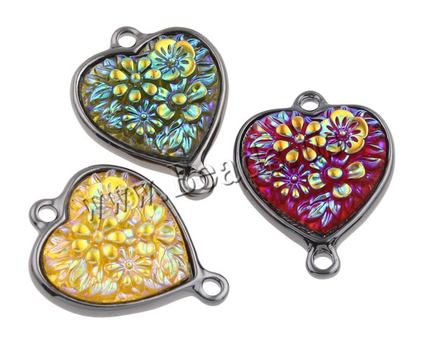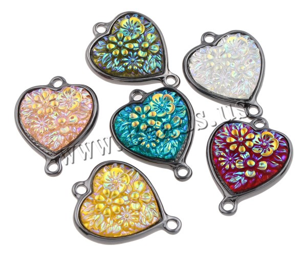 Resin Zinc Alloy Connector with Resin Heart plumbum black color plated & colorful plated & 1/1 loop mixed colors nickel lead & cadmium free Approx 2mm Sold By Bag