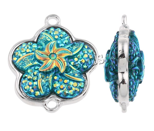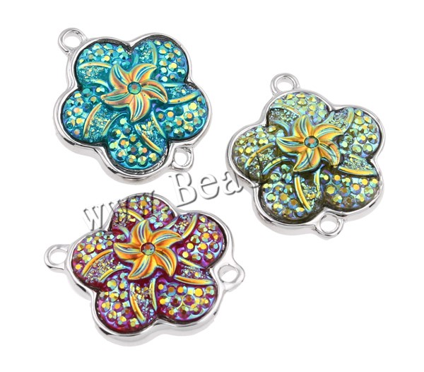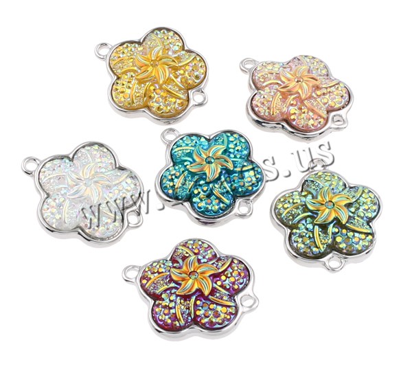 Resin Zinc Alloy Connector with Resin Flower platinum color plated & colorful plated & 1/1 loop mixed colors nickel lead & cadmium free Approx 2mm Sold By Bag