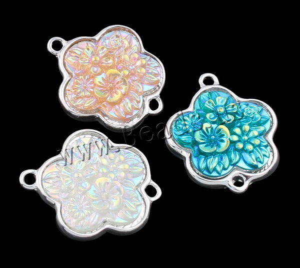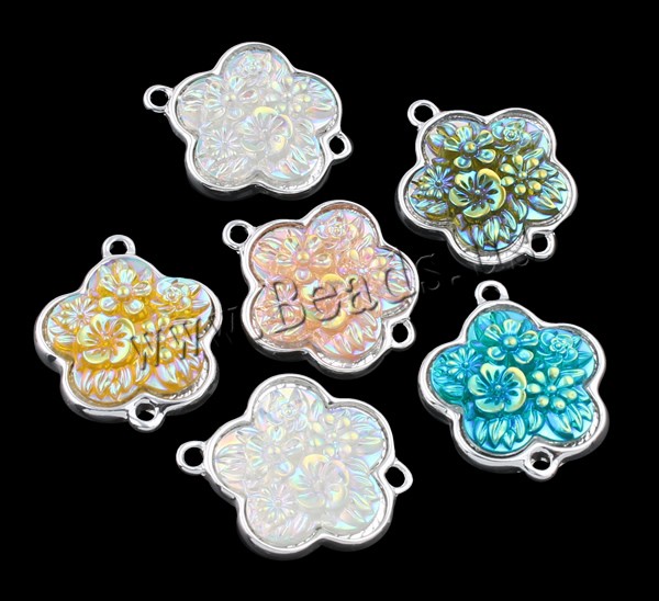 Resin Zinc Alloy Connector with Resin Flower silver color plated & colorful plated & 1/1 loop mixed colors nickel lead & cadmium free Approx 2mm Sold By Bag