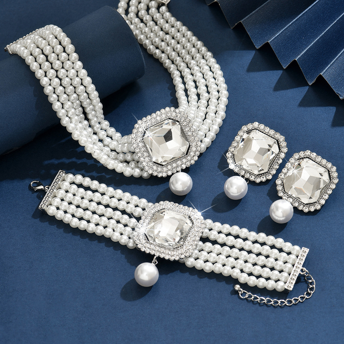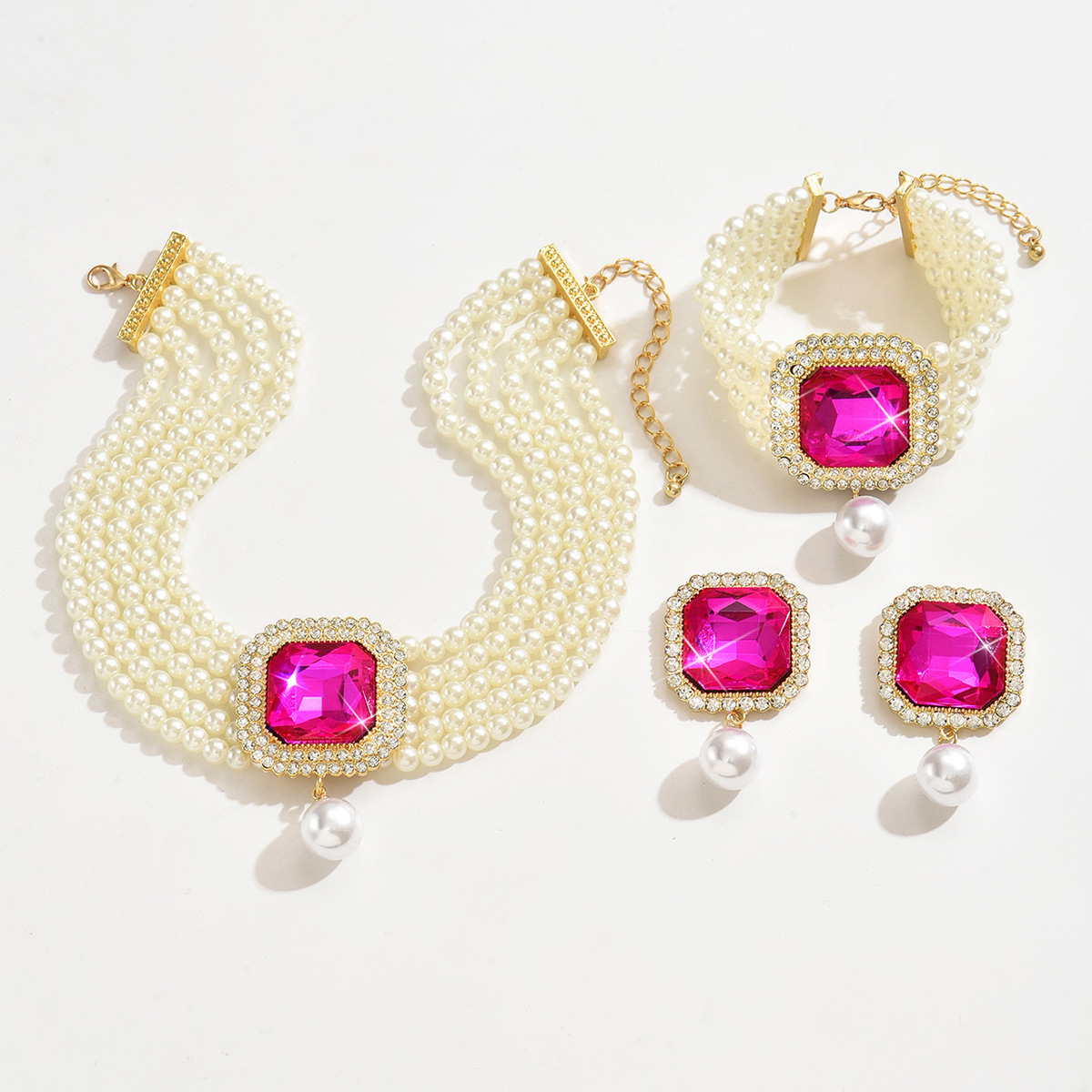 Rhinestone Jewelry Sets ABS Plastic Pearl with Glass plated three pieces & fashion jewelry & with rhinestone Sold By Set