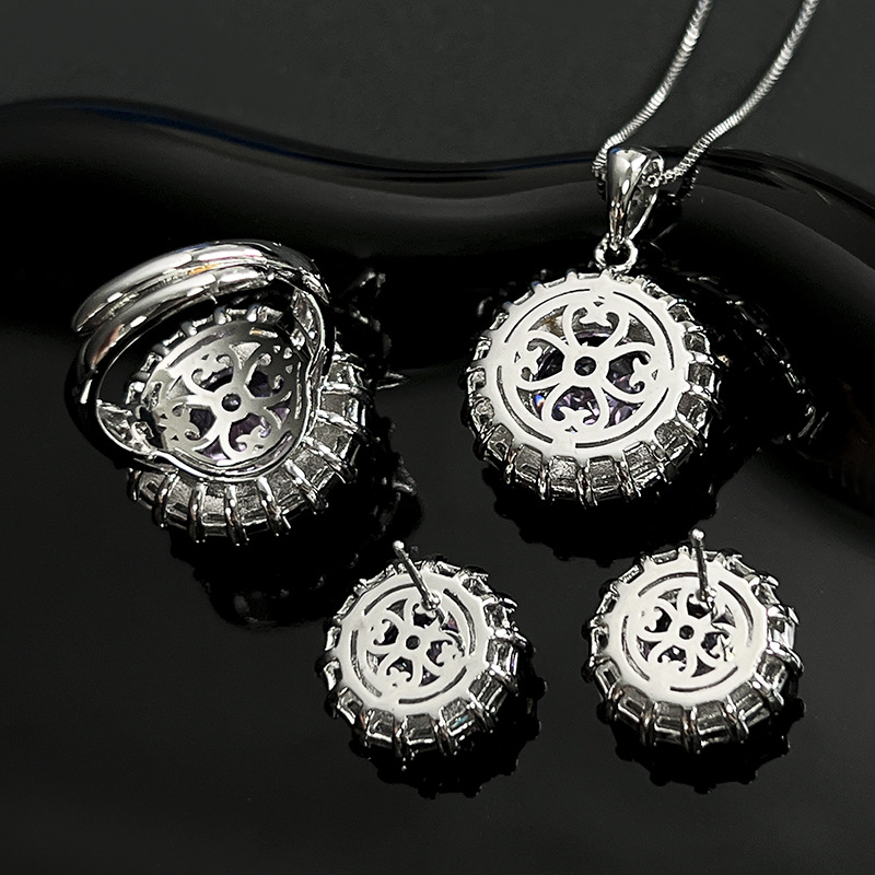 1:Ziluolan pendant with box chain2:Ziluo lan ring3:Ziluo lan earrings