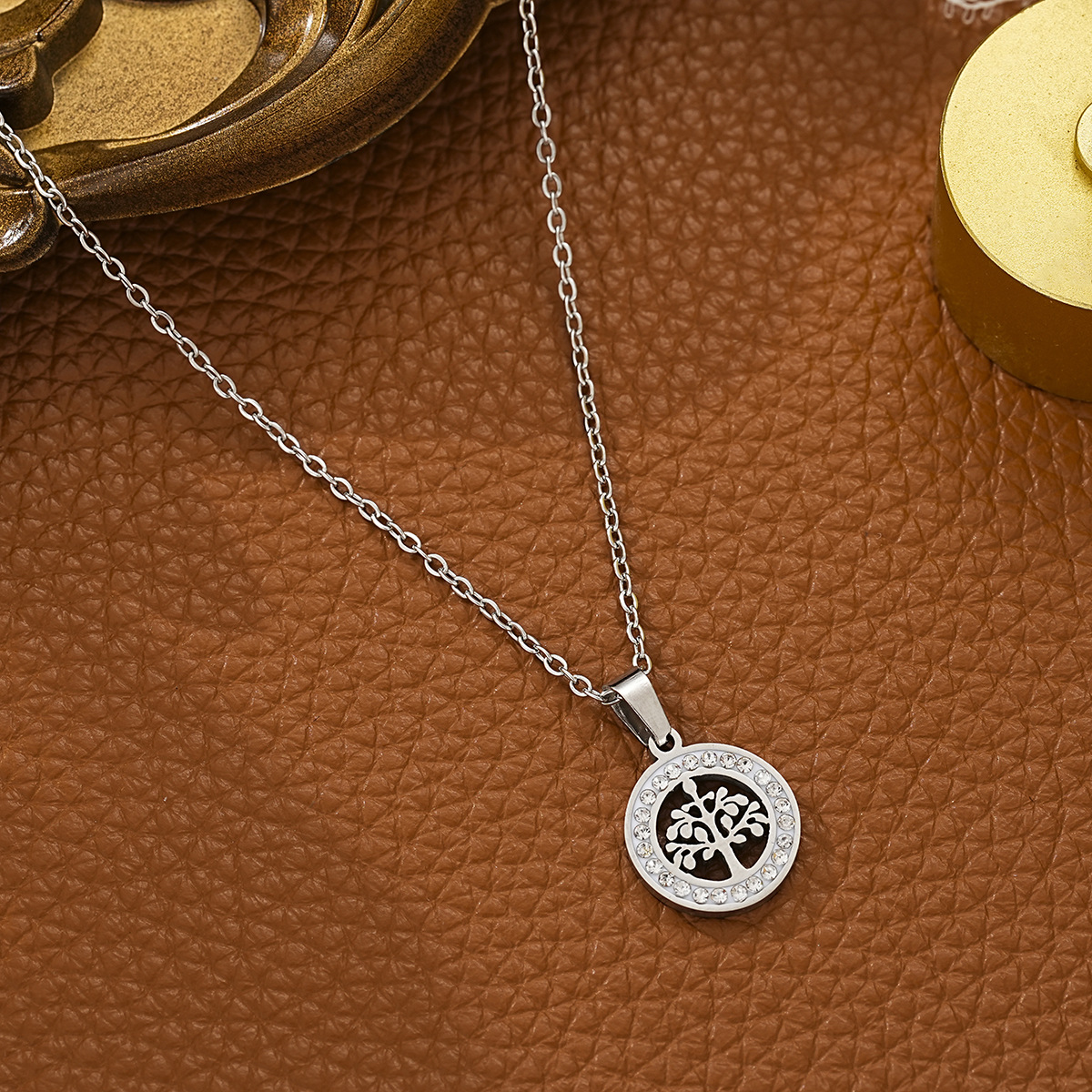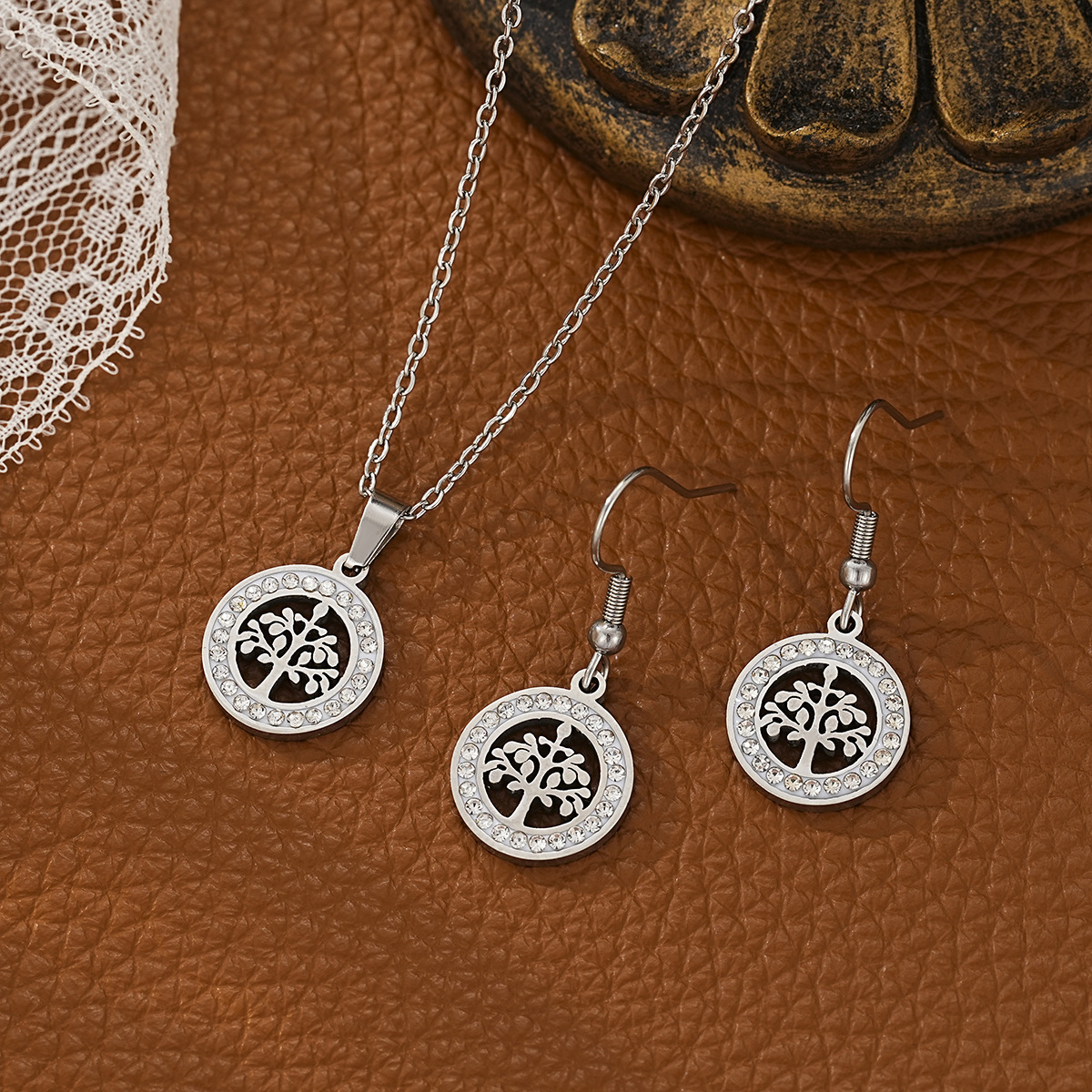 Rhinestone Stainless Steel Jewelry Set earring & necklace 304 Stainless Steel plated & for woman & with rhinestone & hollow original color Sold By Set