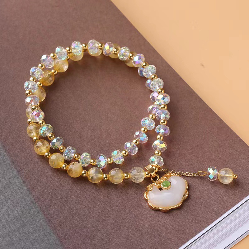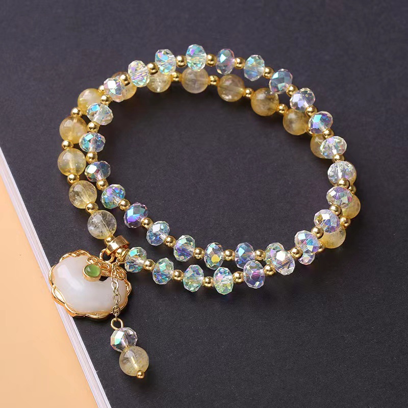 Rutilated Quartz Bracelet with Crystal & Zinc Alloy Double Layer & for woman handmade Approx 12-16 Inch Sold By PC