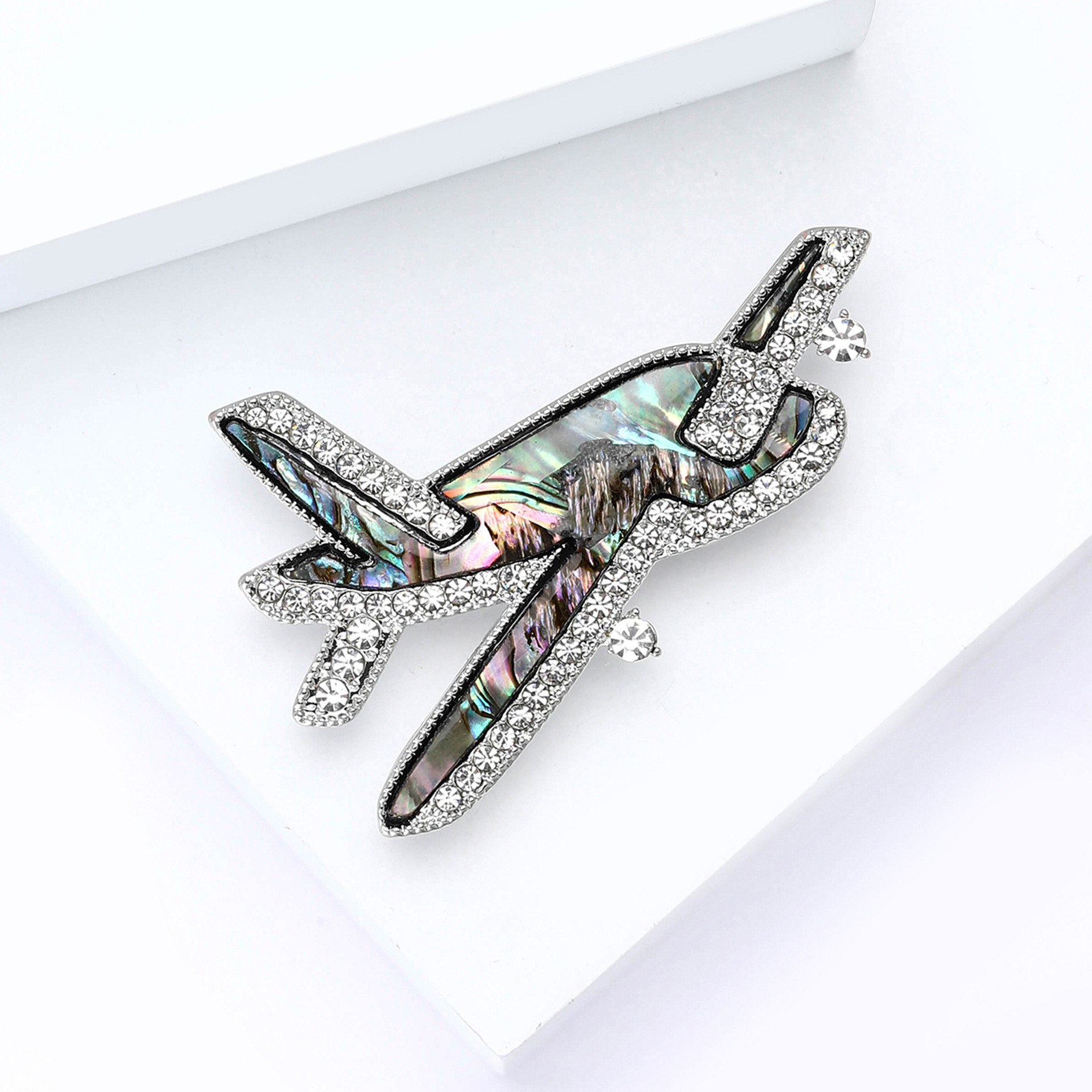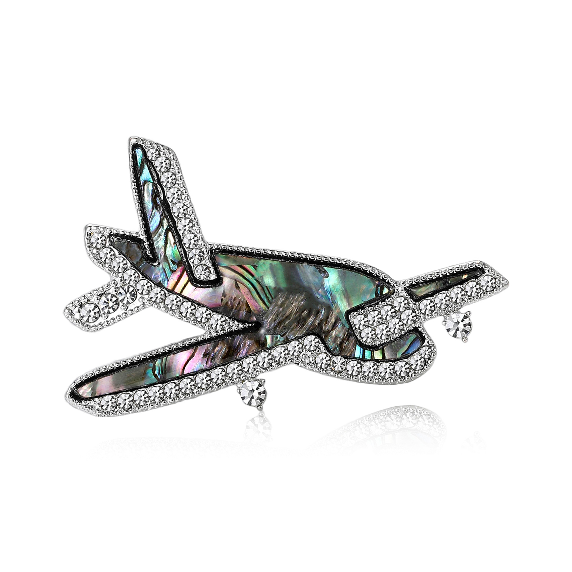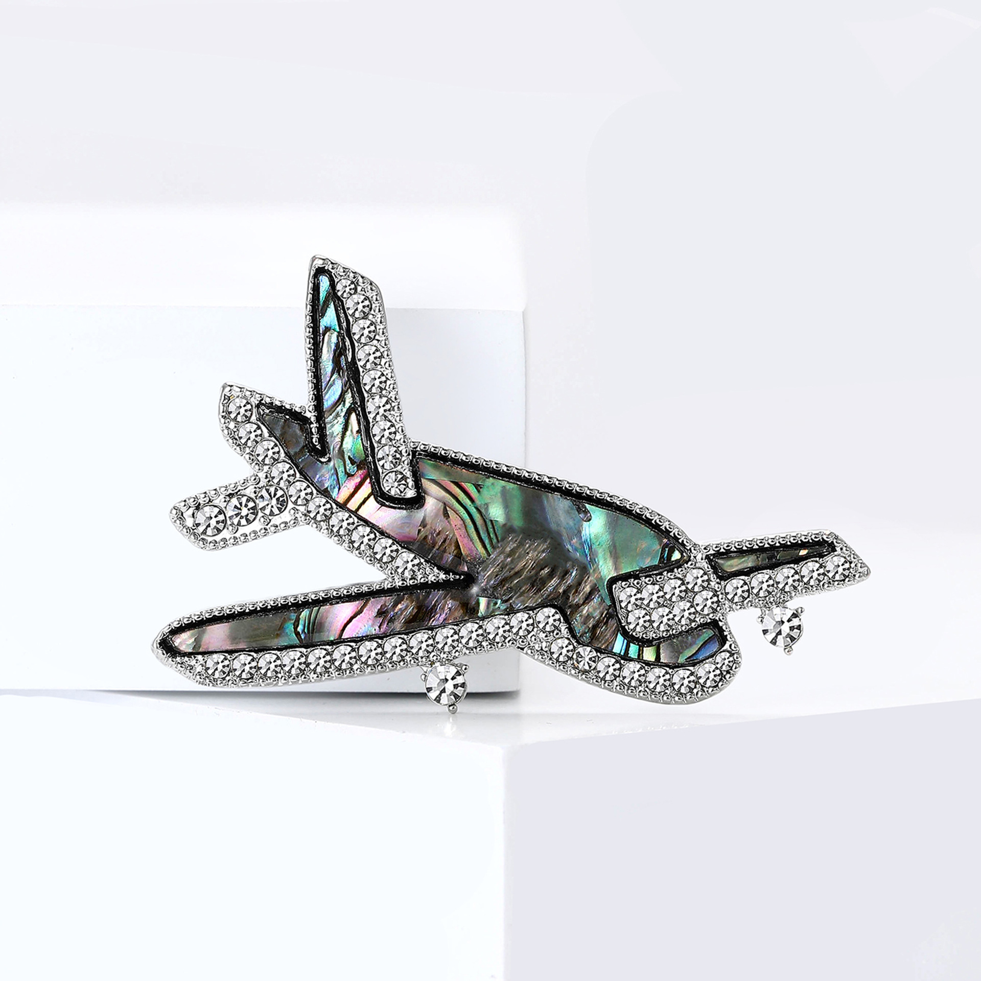 Shell Brooch Zinc Alloy with Abalone Shell Paper Airplane silver color plated for woman & with rhinestone green nickel lead & cadmium free Sold By PC