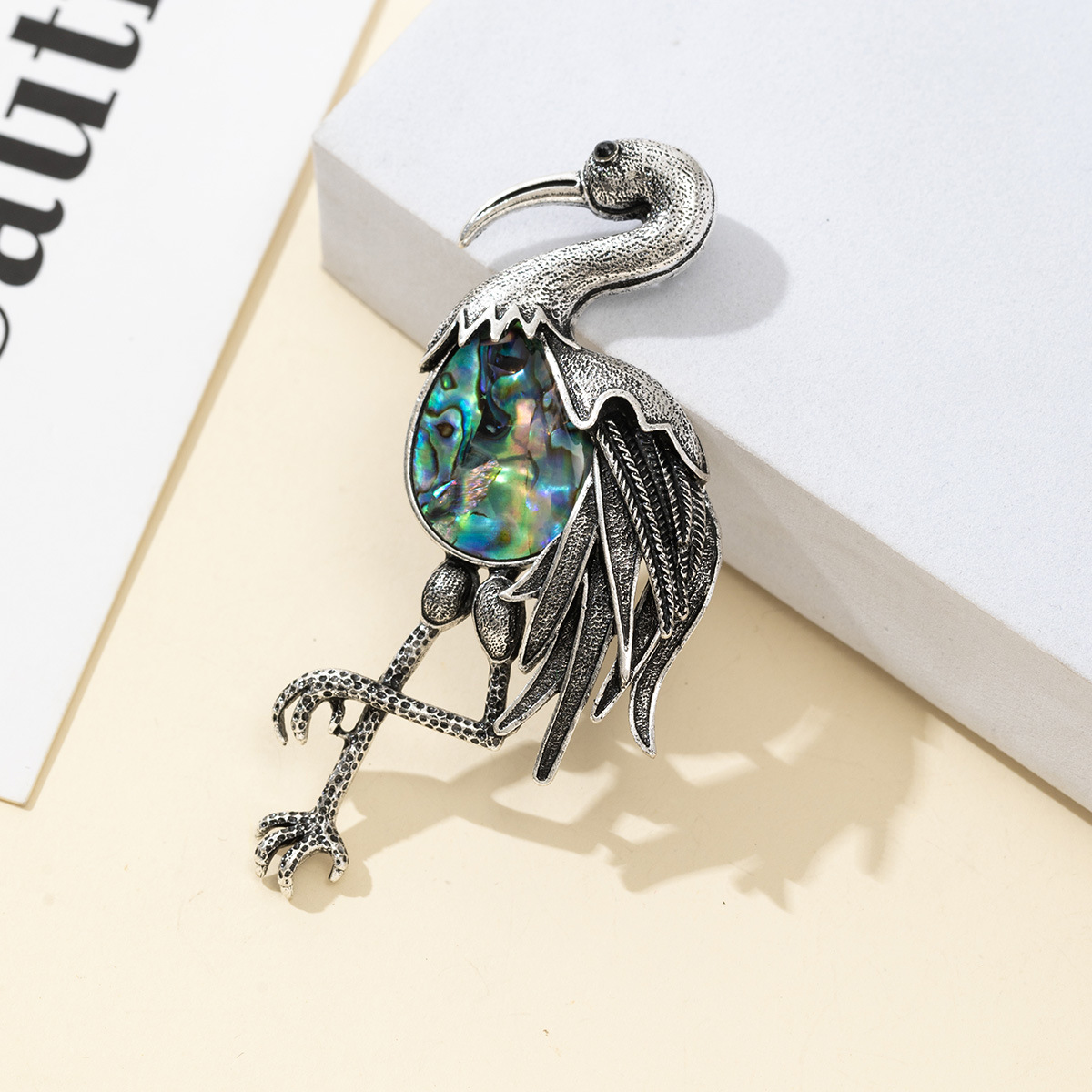 Shell Brooch Zinc Alloy with Abalone Shell Bird silver color plated fashion jewelry mixed colors nickel lead & cadmium free Sold By PC