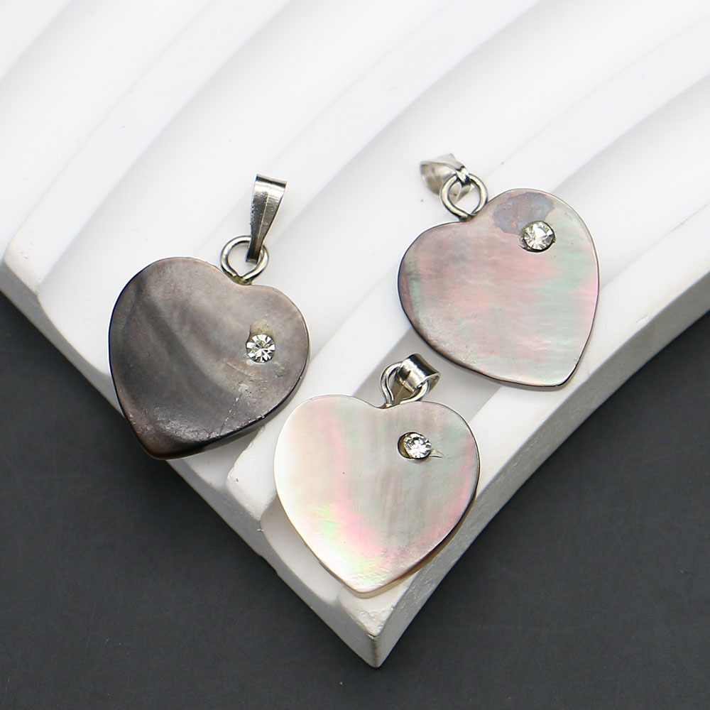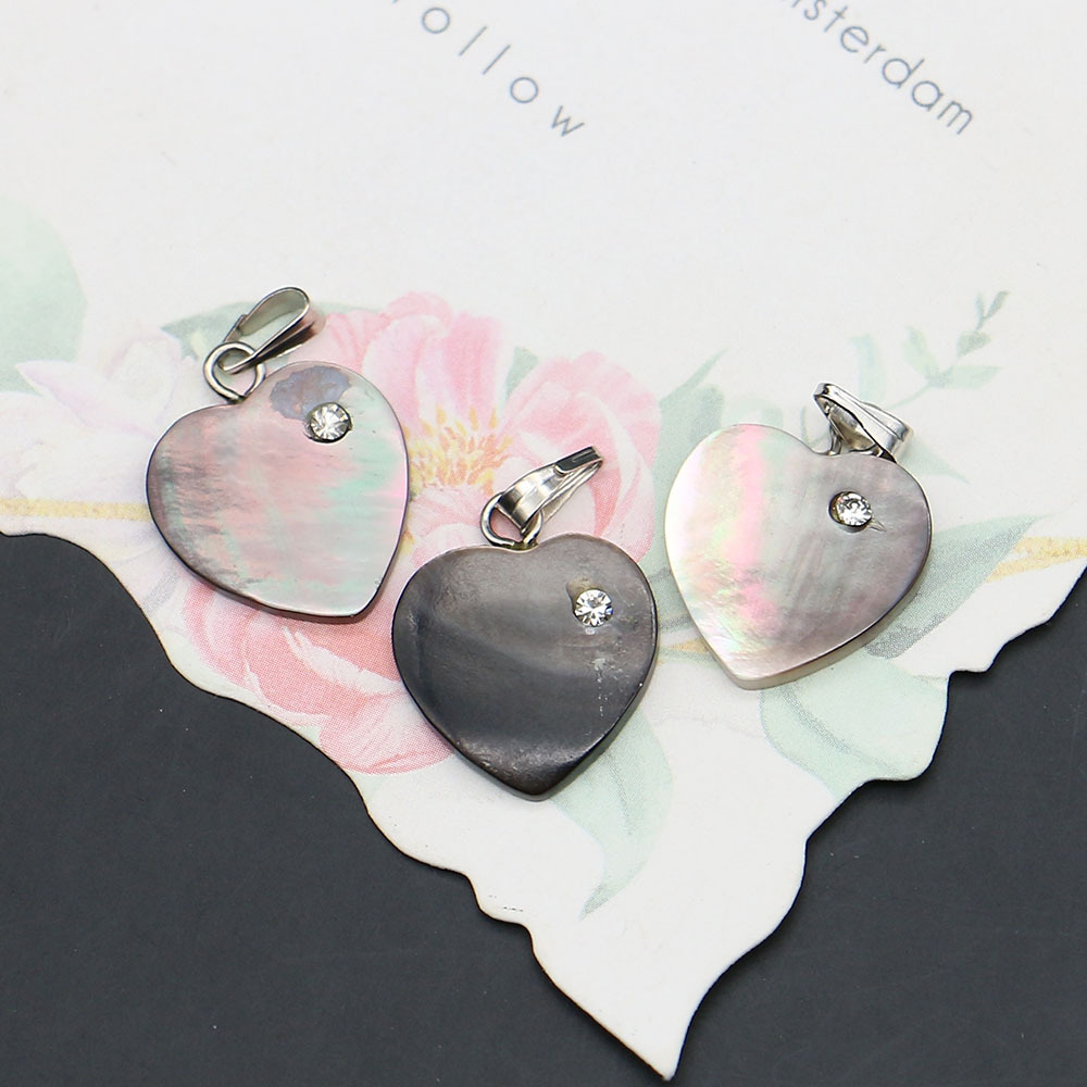 Shell Pendants Black Lip Shell with Wax Cord & Iron Heart DIY & micro pave cubic zirconia mixed colors Sold By PC