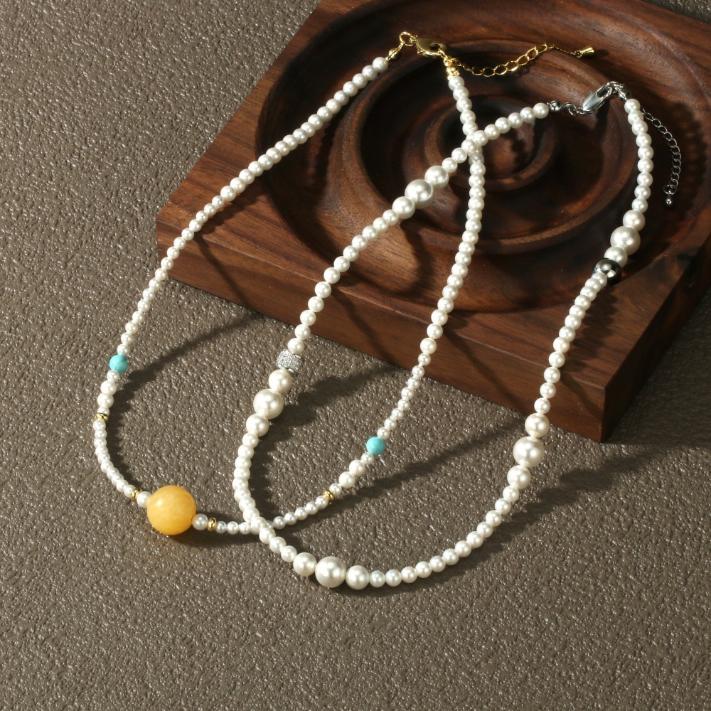 South Sea Shell Necklace Shell Pearl with Gemstone & Brass plated fashion jewelry & micro pave cubic zirconia Sold By PC