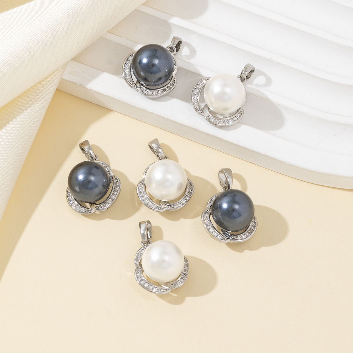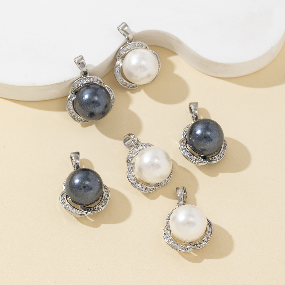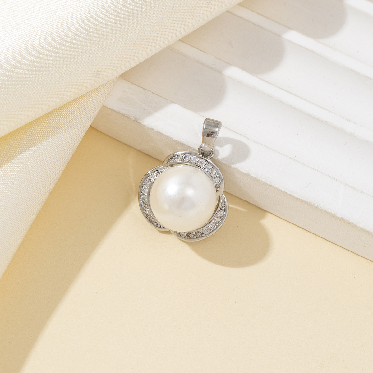 South Sea Shell Pendant Brass with Shell Pearl plated DIY & with rhinestone nickel lead & cadmium free Sold By PC
