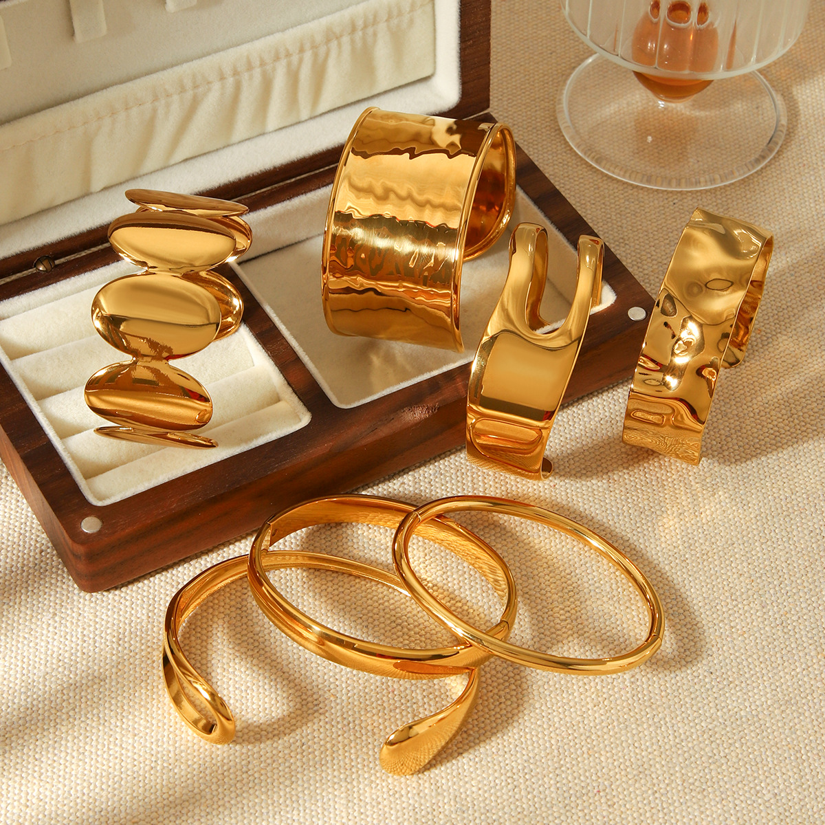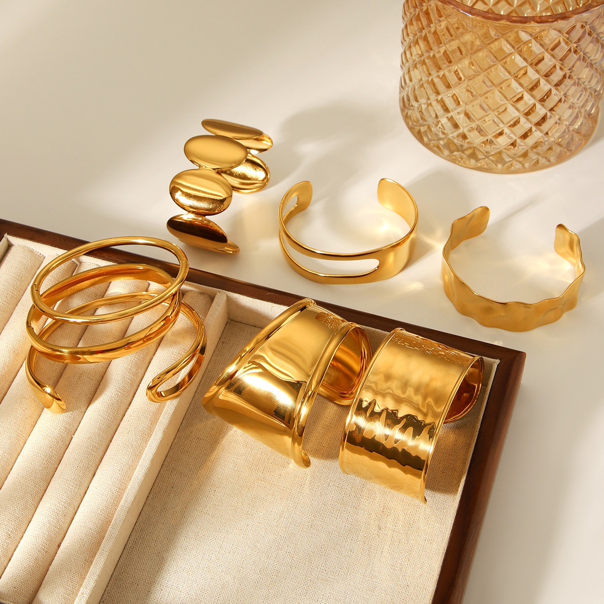 304 Stainless Steel Cuff Bangle gold color plated & for woman Sold By PC