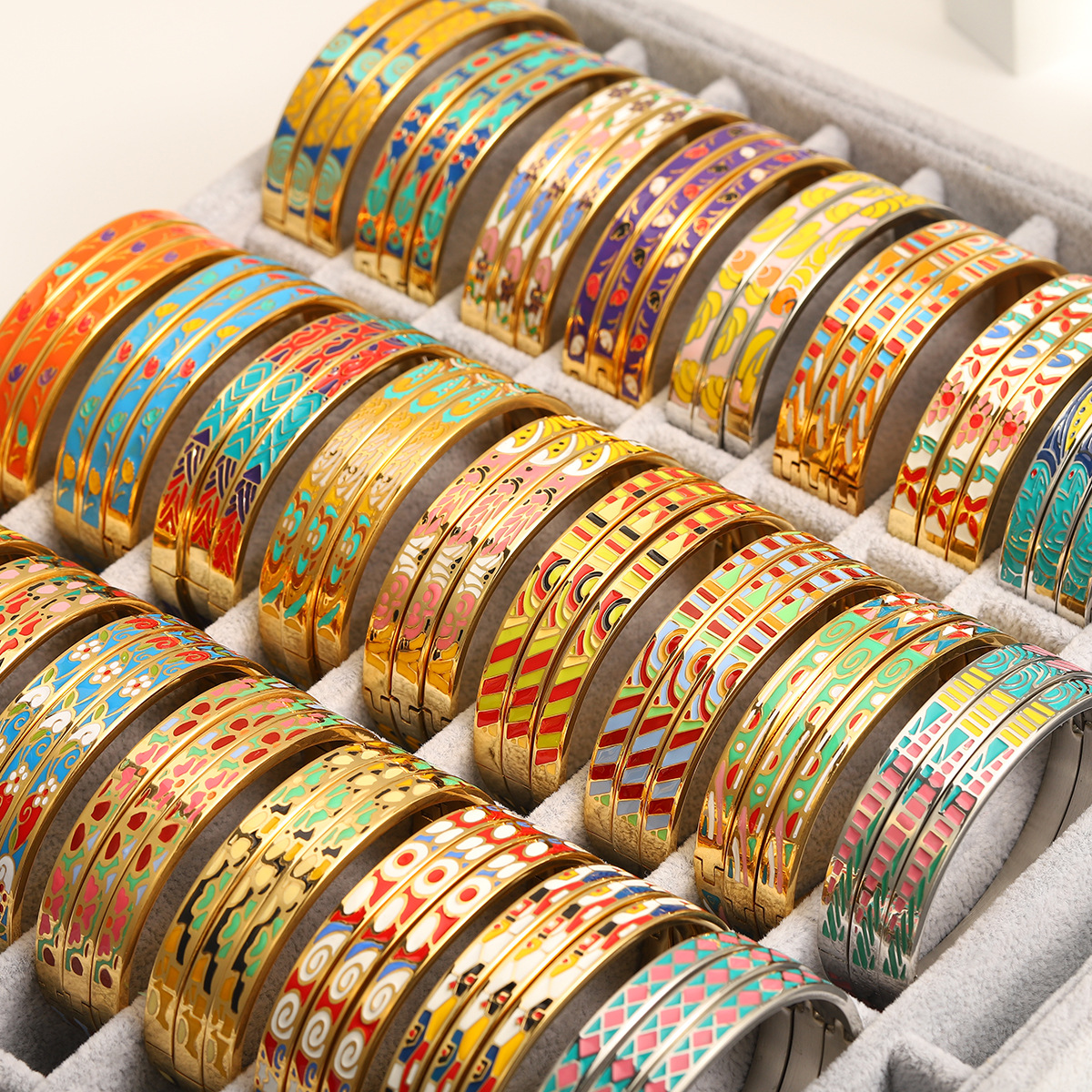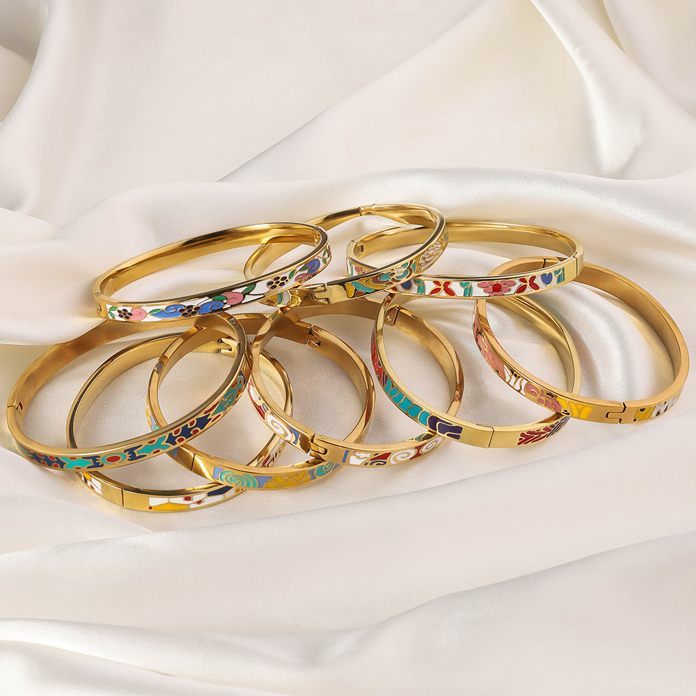 Stainless Steel Bangle plated & for woman & enamel 6mm Inner Approx 60mm Sold By PC