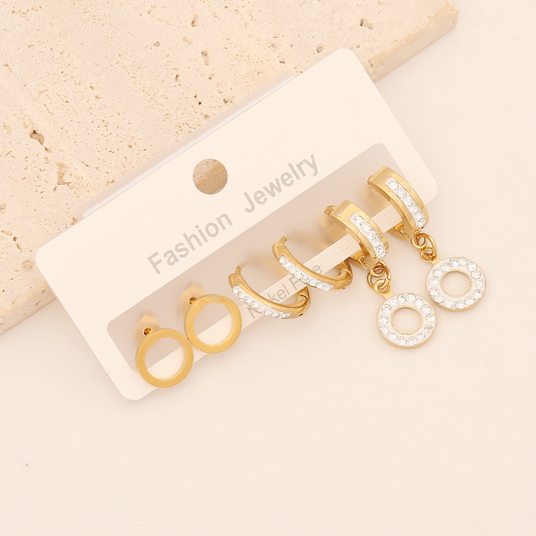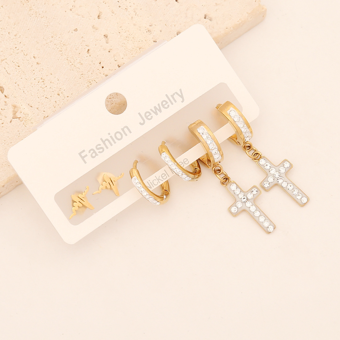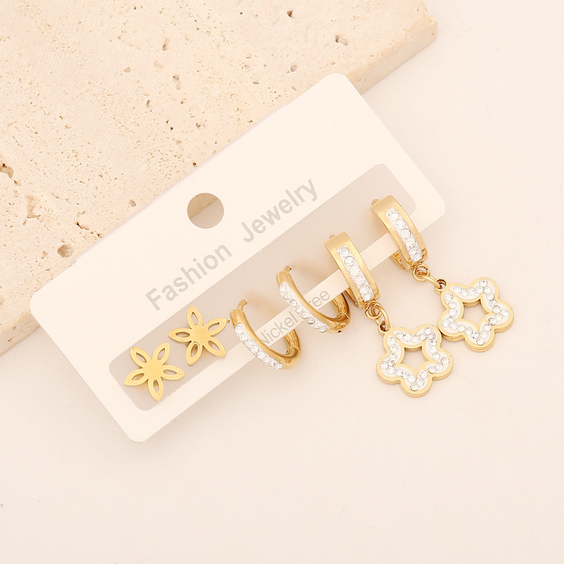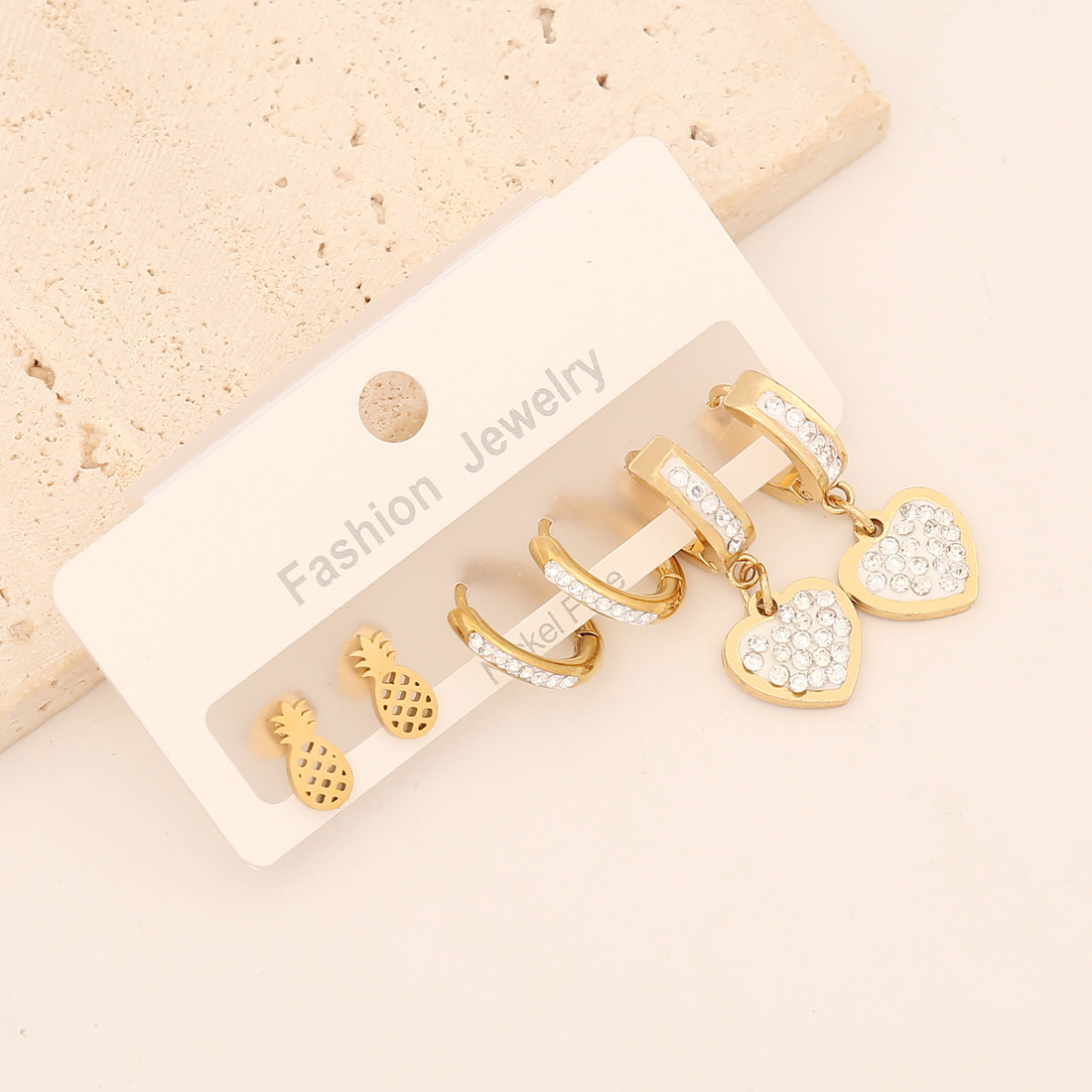 304 Stainless Steel Earring Set gold color plated & for woman & with rhinestone Sold By Set