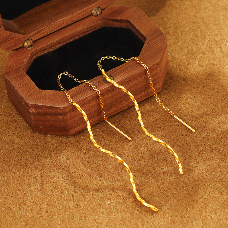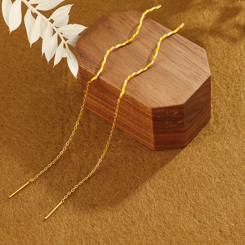 304 Stainless Steel Thread Through Earrings gold color plated fashion jewelry & for woman Sold By Pair