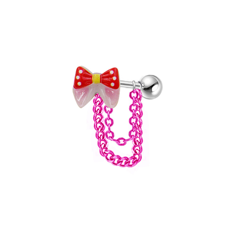 Titanium Steel Piercing Earring with Cloth & Glass & Resin Bowknot Unisex Sold By PC