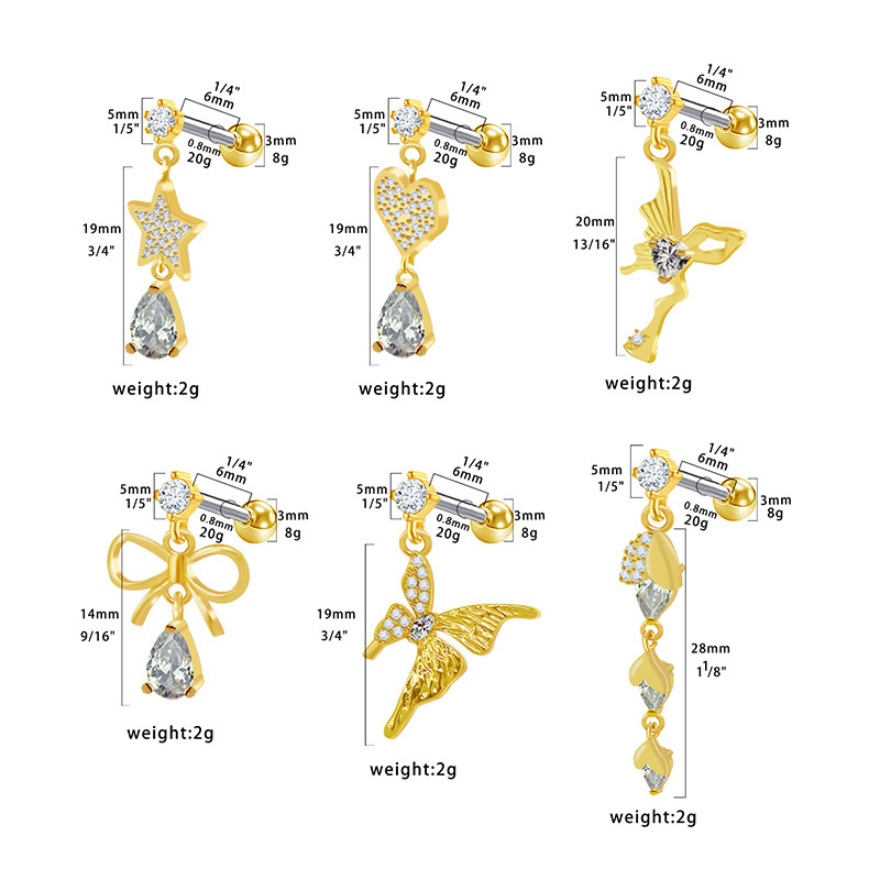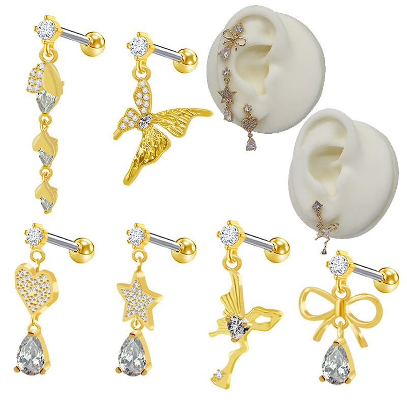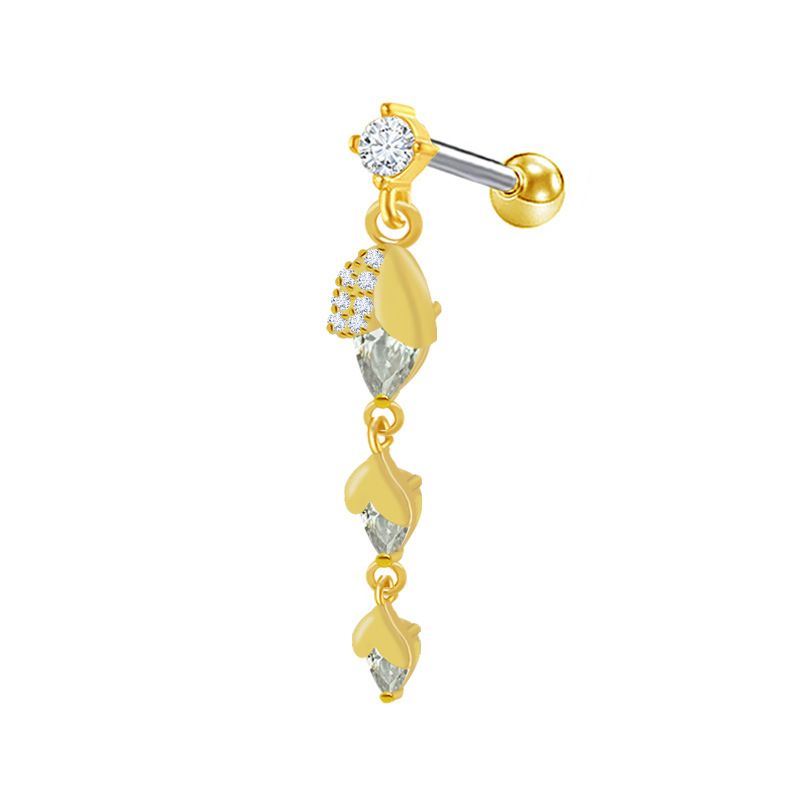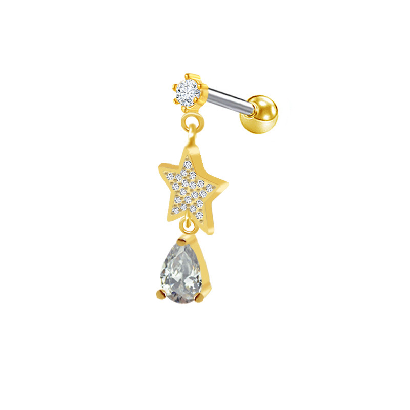 Titanium Steel Piercing Earring gold color plated Unisex & micro pave cubic zirconia Sold By PC