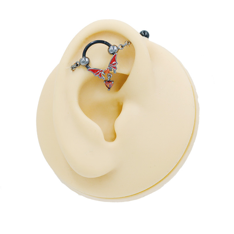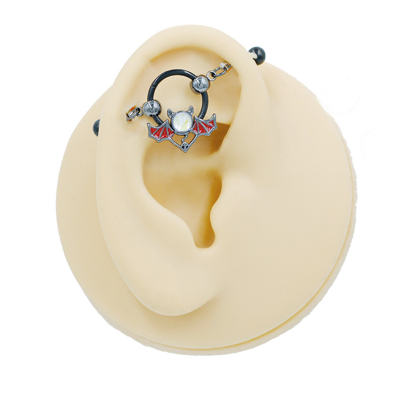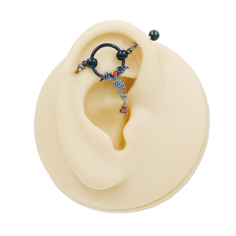 Titanium Steel Piercing Earring Bat plated Unisex & enamel & with rhinestone Sold By PC