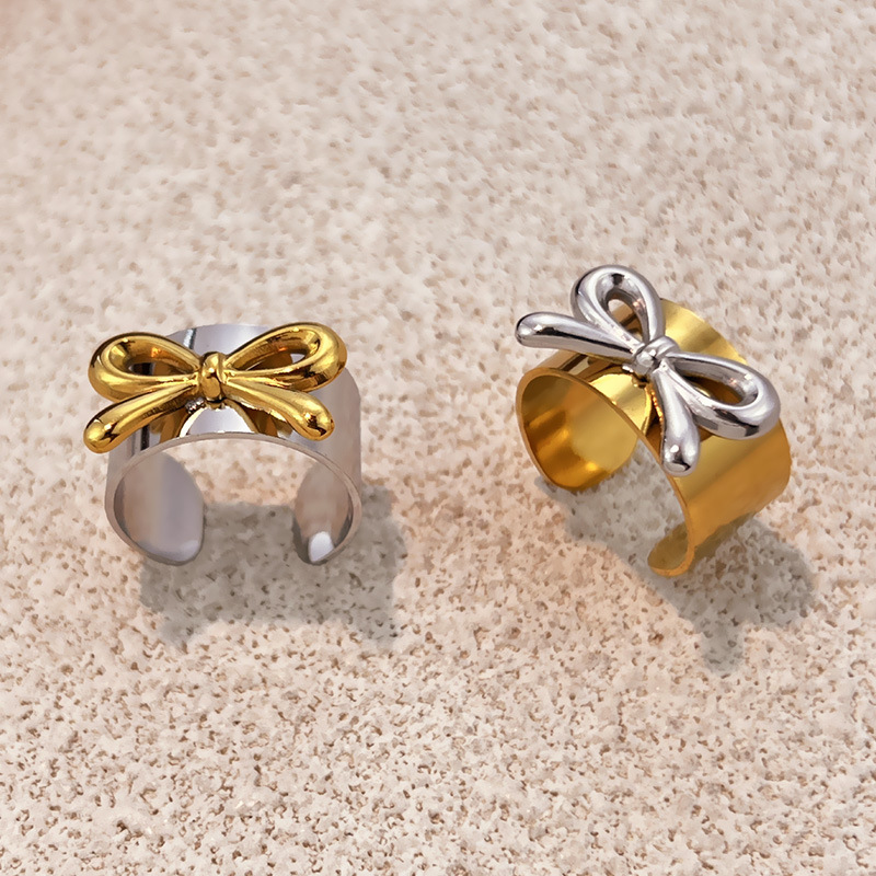 304 Stainless Steel Cuff Finger Ring Bowknot plated fashion jewelry & for woman Sold By PC
