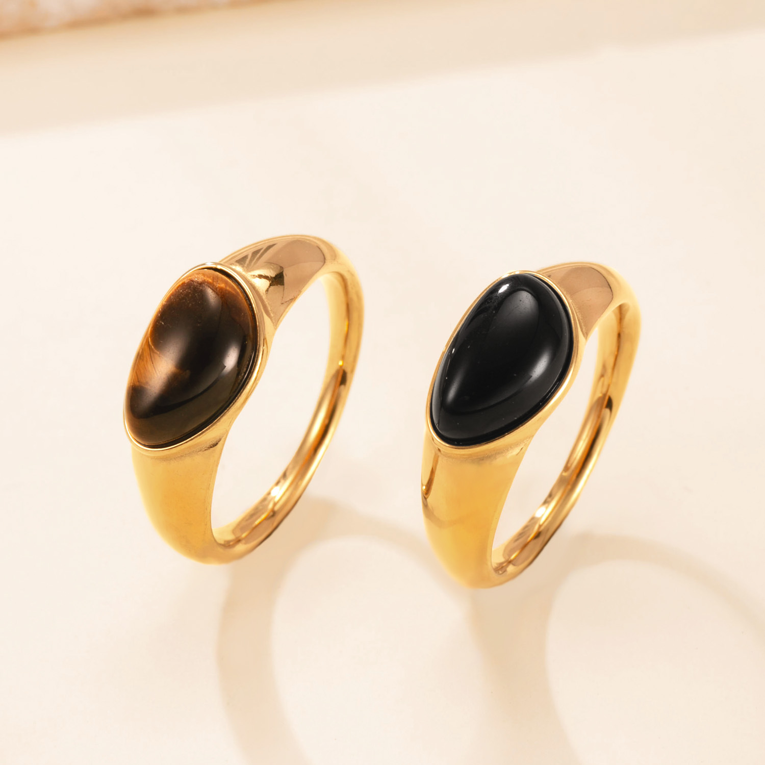 Stainless Steel Finger Ring 304 Stainless Steel with Natural Stone 18K gold plated fashion jewelry & Unisex US Ring Sold By PC