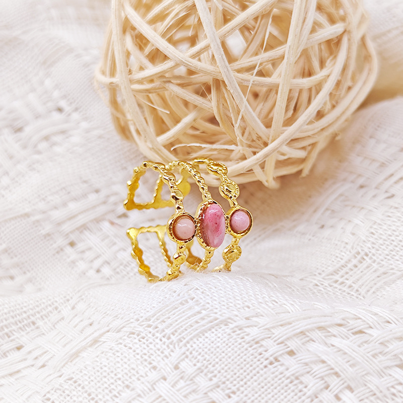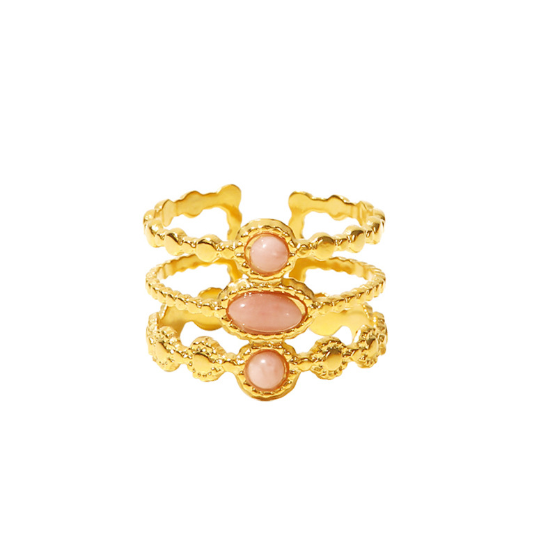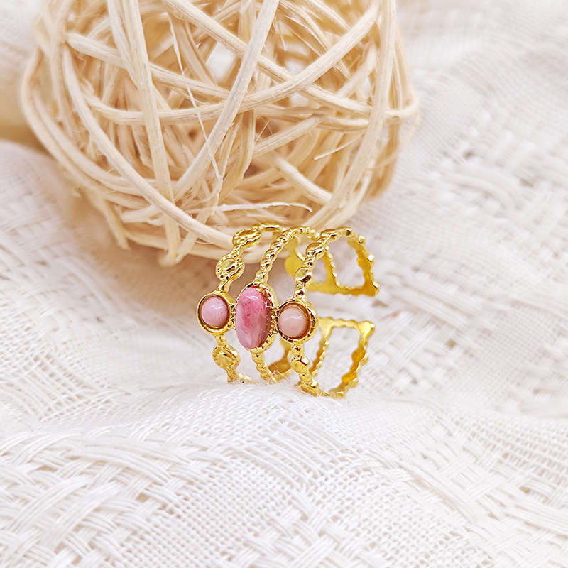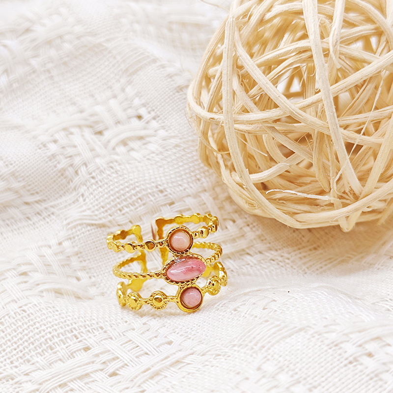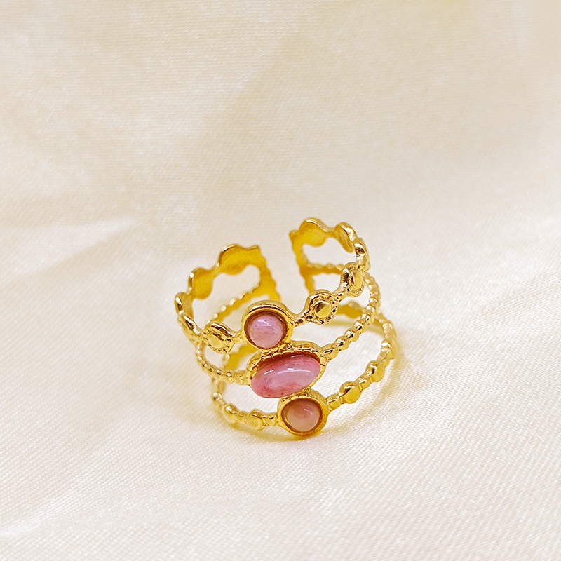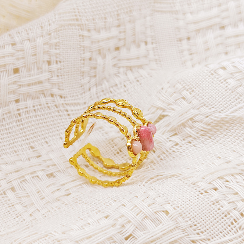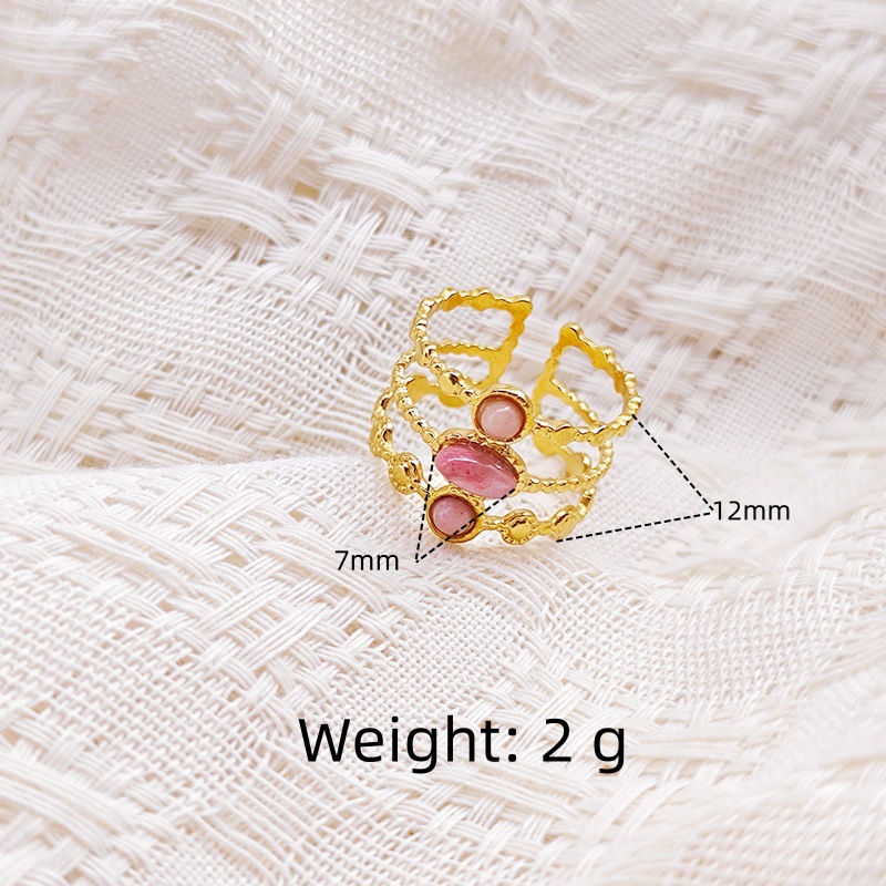 Stainless Steel Finger Ring, 304 Stainless Steel, with Opal, Flower, plated, fashion jewelry & different styles for choice & for woman, golden, Sold By PC