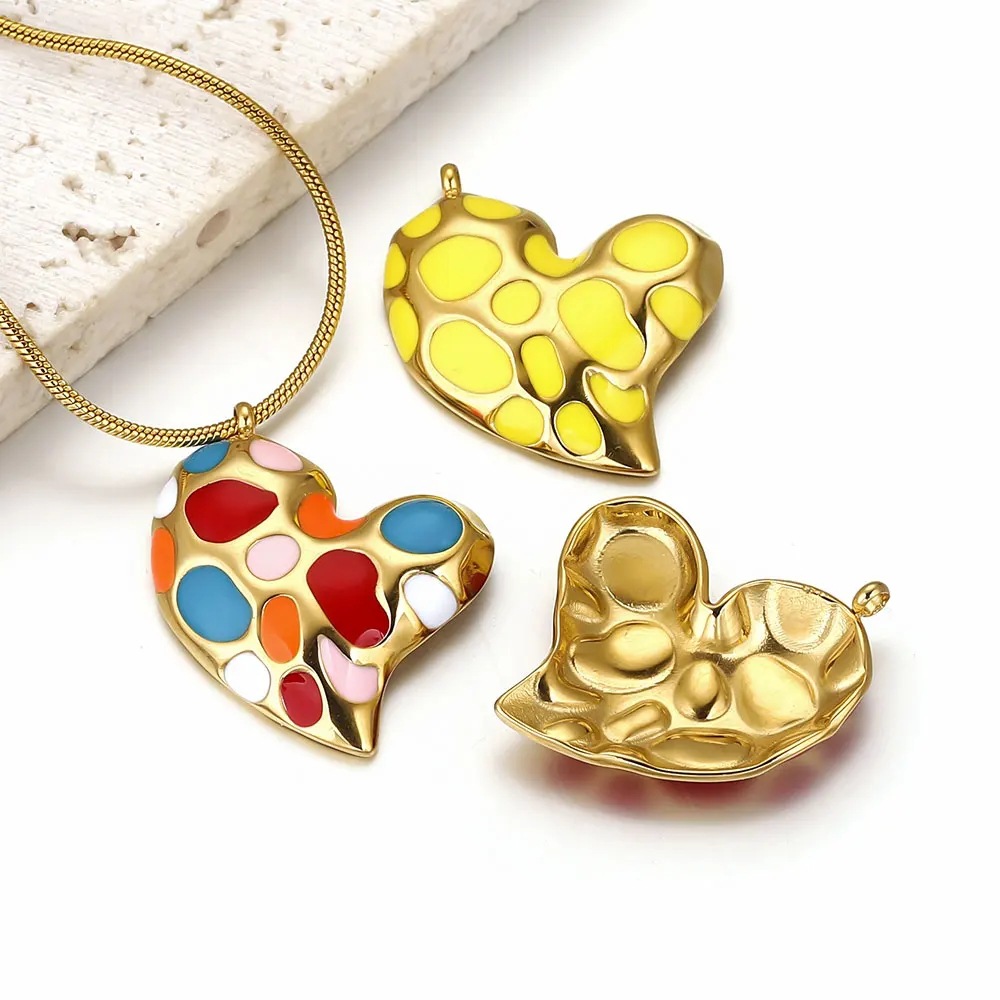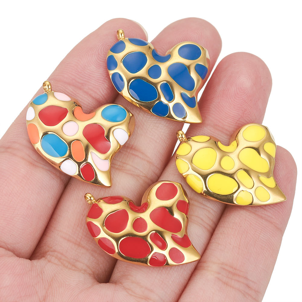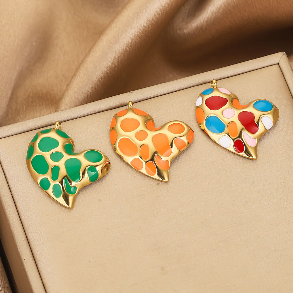 Stainless Steel Heart Pendants 304 Stainless Steel gold color plated for woman & enamel Sold By PC