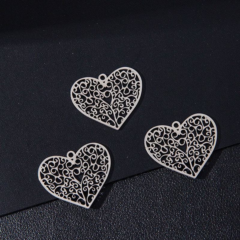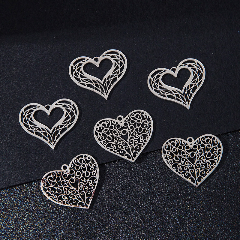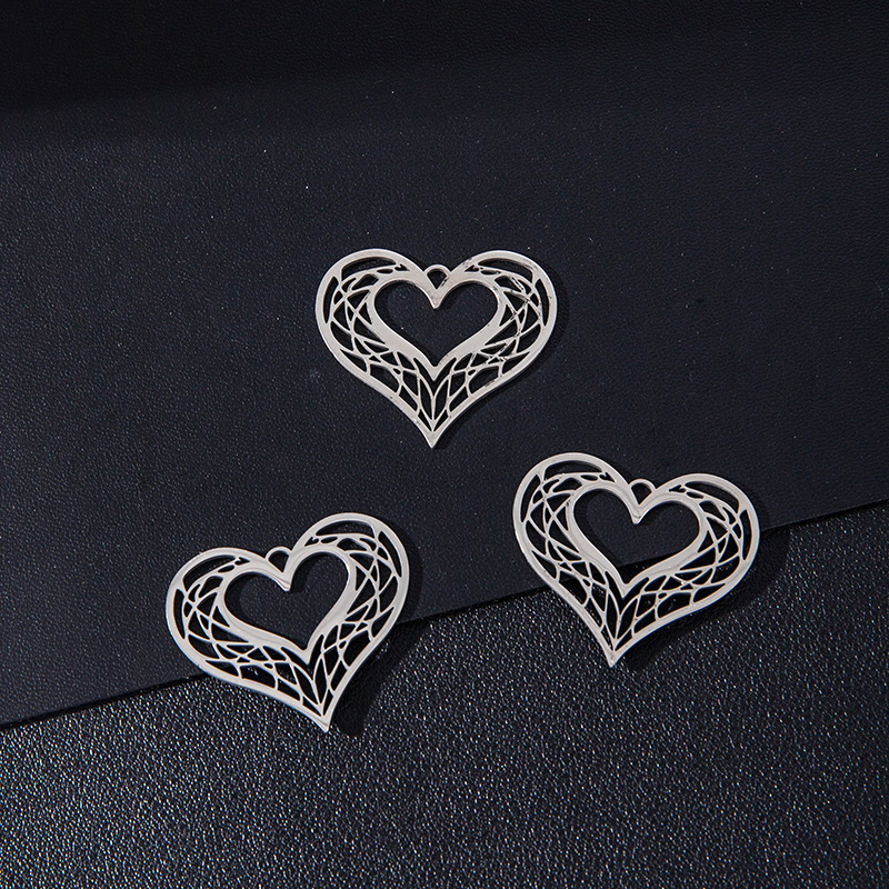 Stainless Steel Heart Pendants 304 Stainless Steel silver color plated DIY Sold By Pair