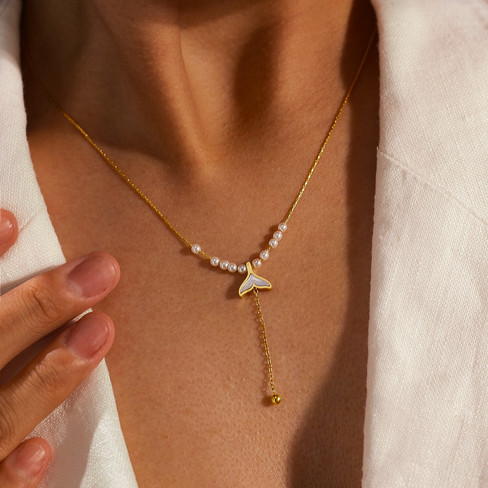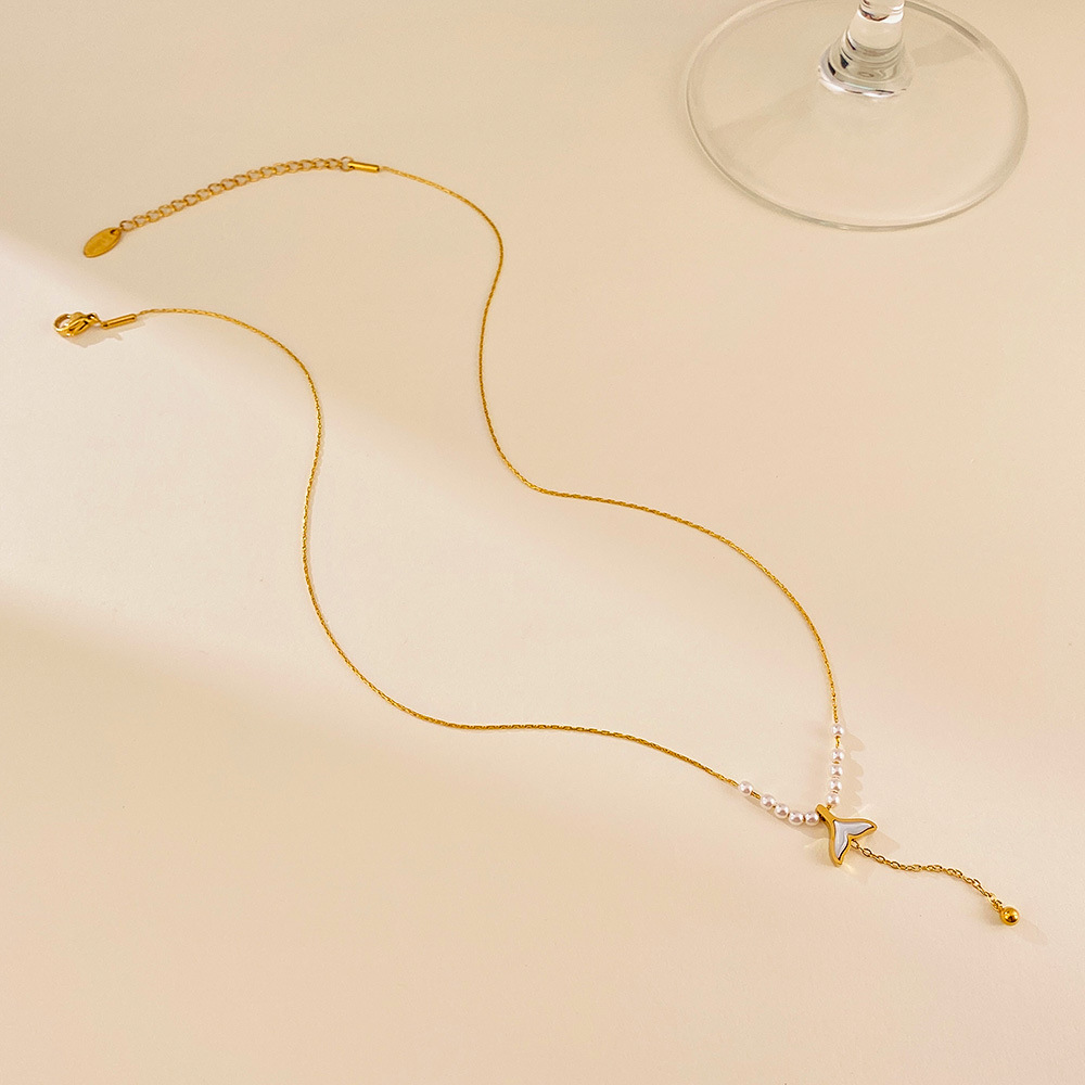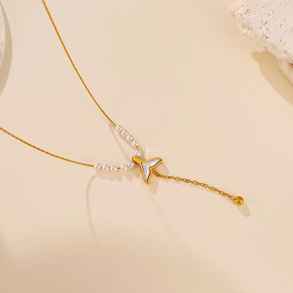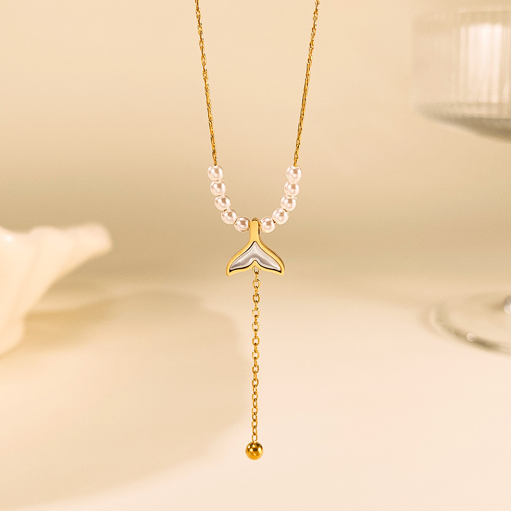 Stainless Steel Jewelry Necklace 304 Stainless Steel with Pearl Oyster & Glass Beads plated fashion jewelry & for woman golden Sold By PC