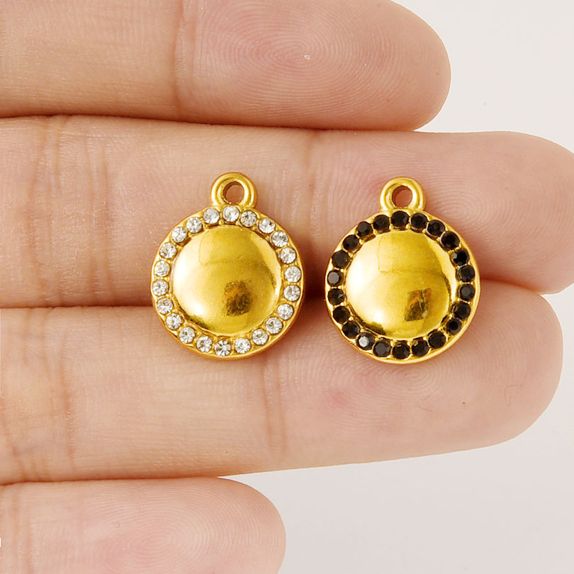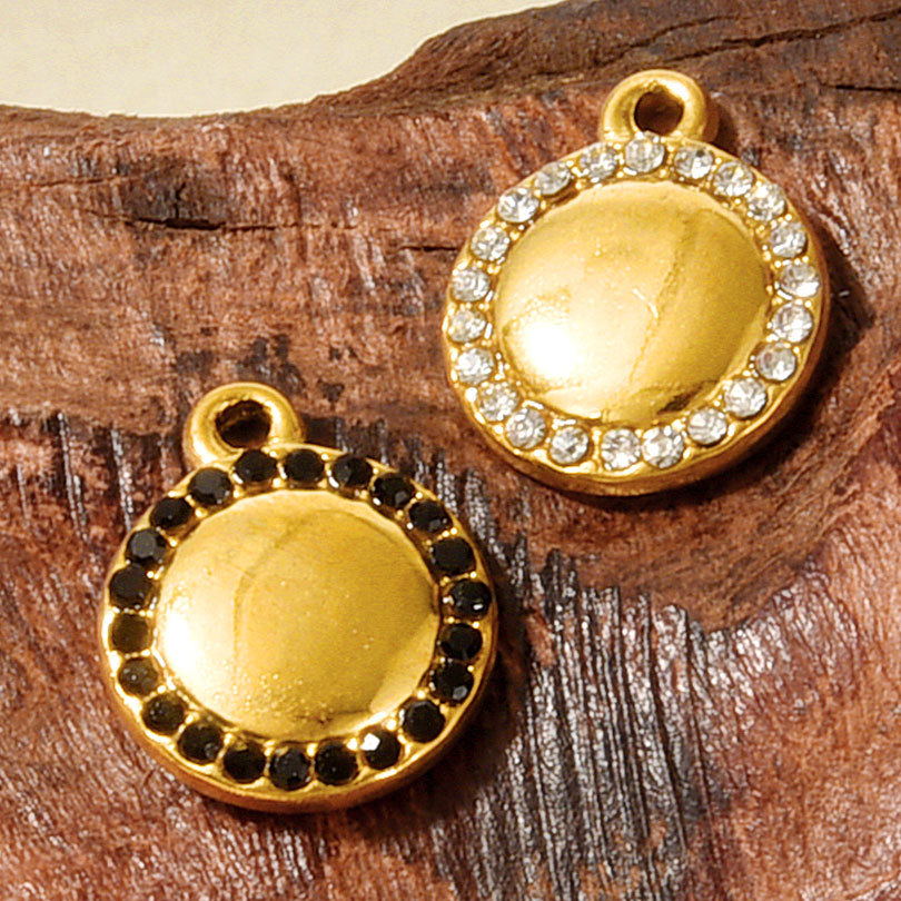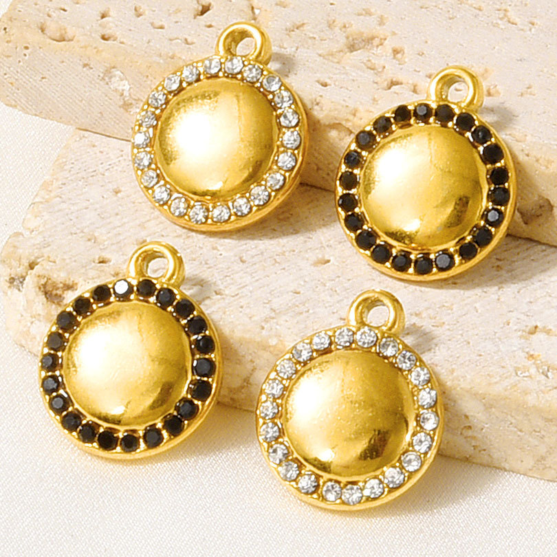 Stainless Steel Pendants 304 Stainless Steel Round plated DIY & with rhinestone Sold By Bag