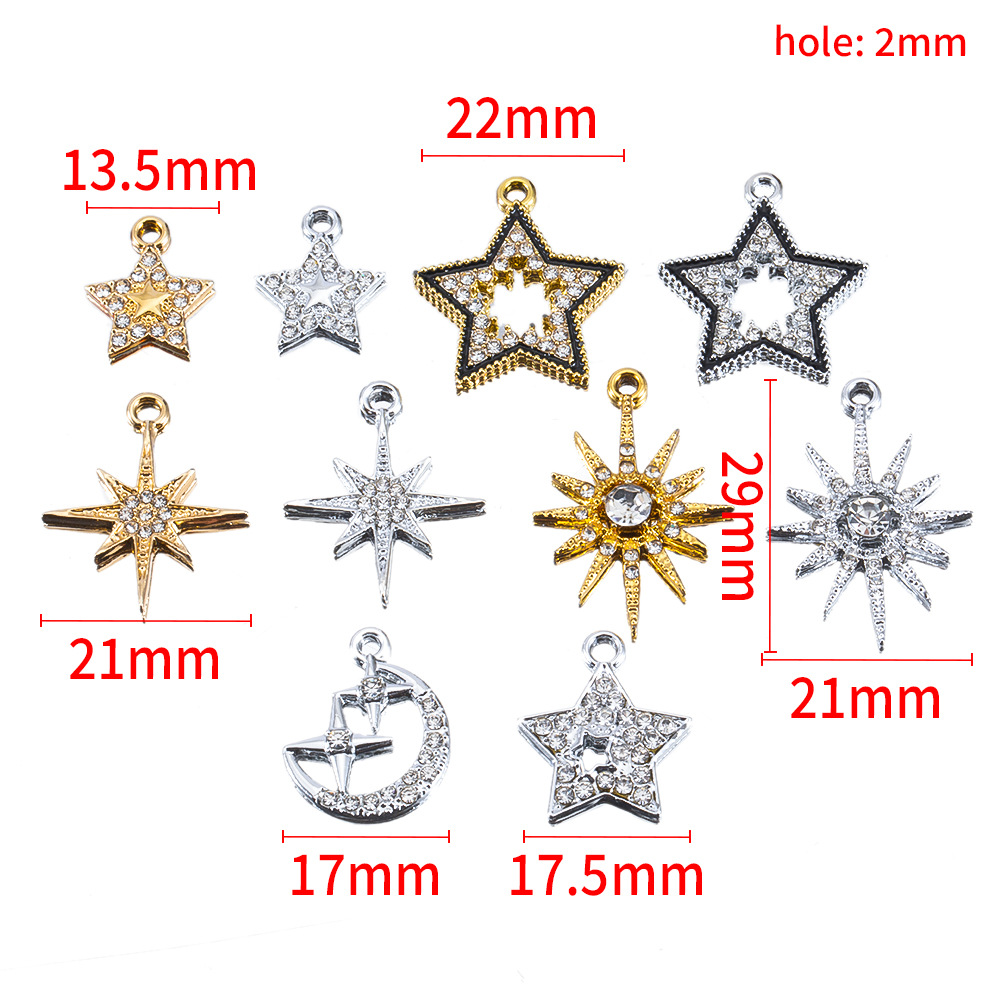 1:17.5mm star pendant-white k2:Moon pendant-white k3:Sunflower pendant-white k4:Sunflower pendant-kc gold5:Six-pointed star pendant-white k6:Six-pointed star pendant-kc gold7:Black edge star pendant-white k8:Black edge star pendant-kc gold9:13.5mm star pendant-white k10:13.5mm star pendant-kc gold