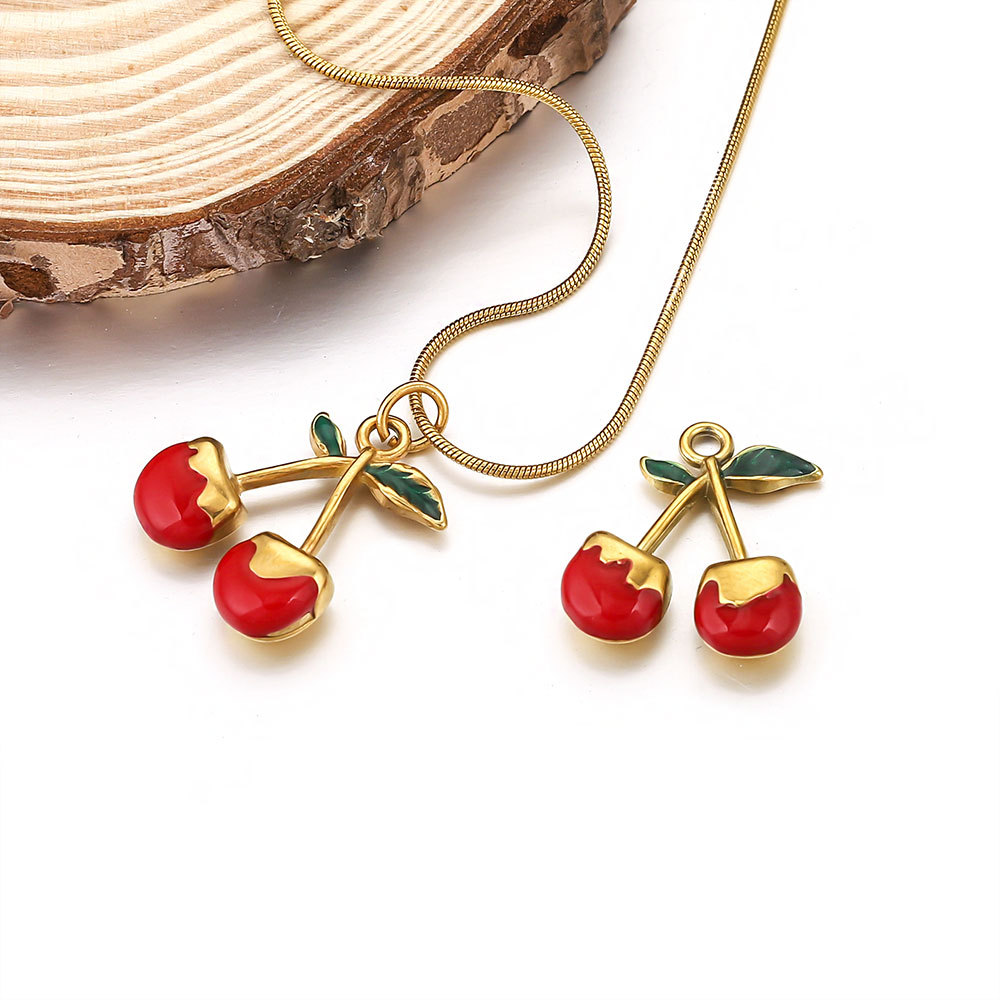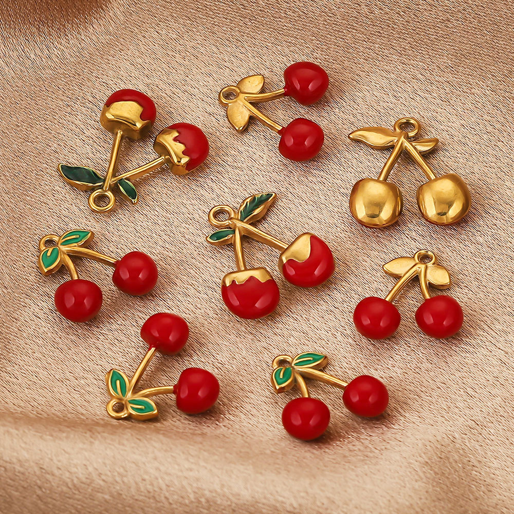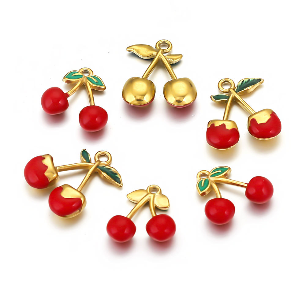 Stainless Steel Pendants 304 Stainless Steel Cherry gold color plated DIY & enamel Sold By PC