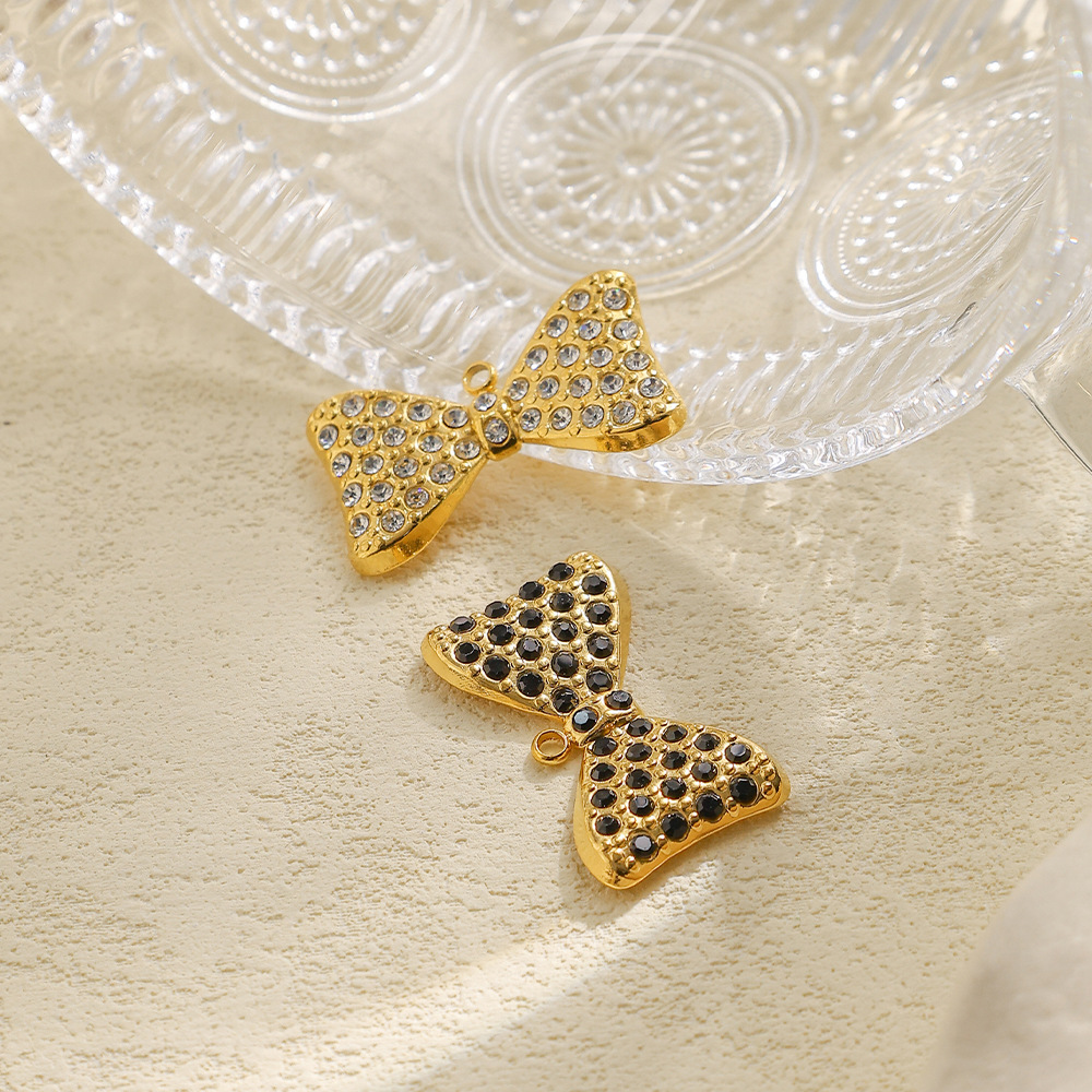 Stainless Steel Pendants 304 Stainless Steel Bowknot gold color plated DIY & with rhinestone Sold By Bag