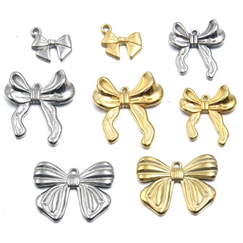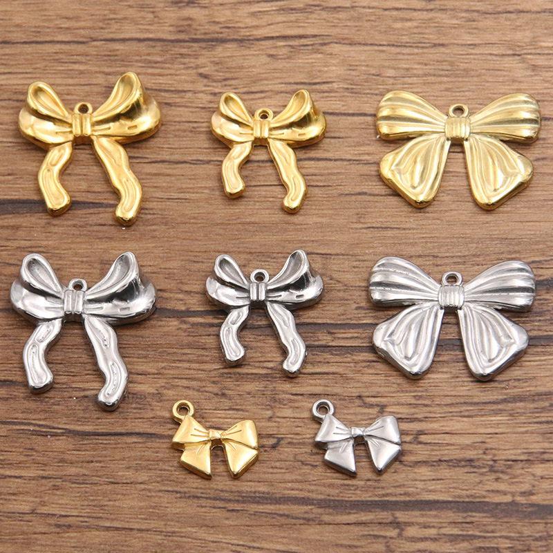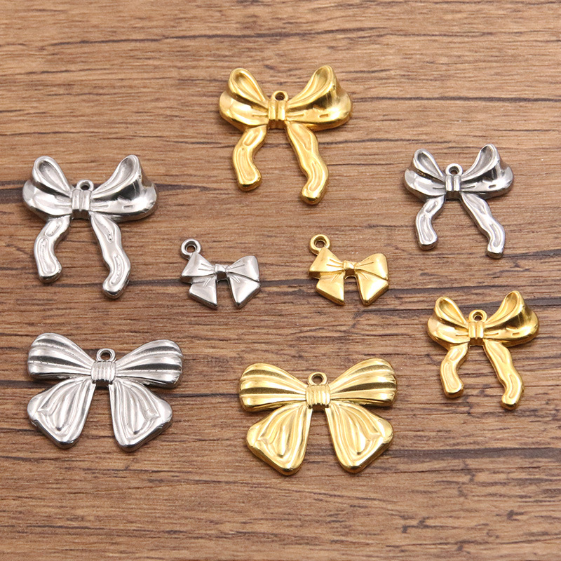 Stainless Steel Pendants 304 Stainless Steel Bowknot plated DIY Sold By Bag