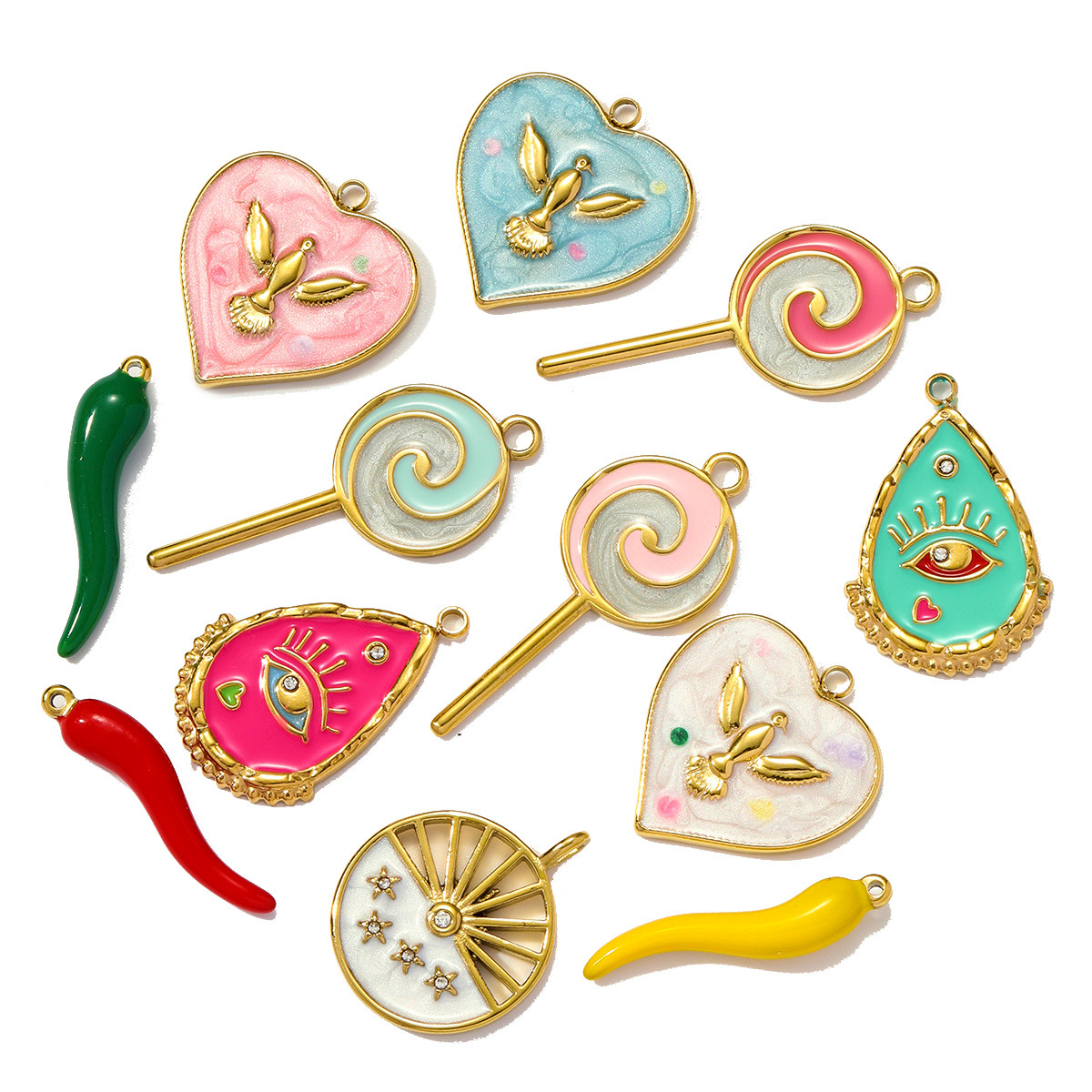Stainless Steel Pendants 304 Stainless Steel plated DIY & enamel & with rhinestone Sold By Bag