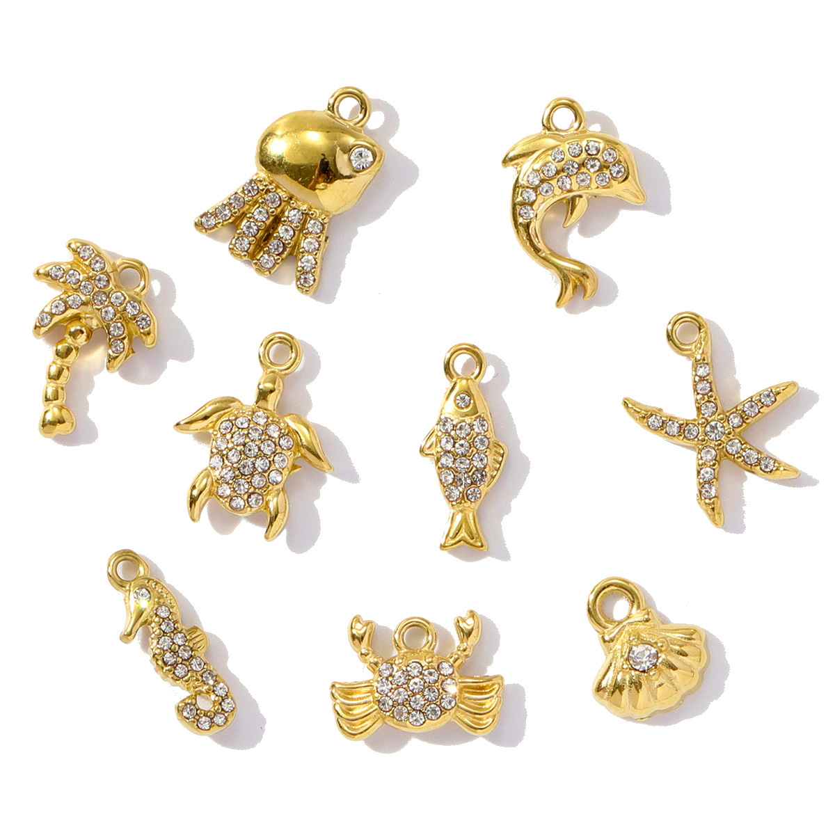 Stainless Steel Pendants 304 Stainless Steel gold color plated DIY & with rhinestone Sold By Bag