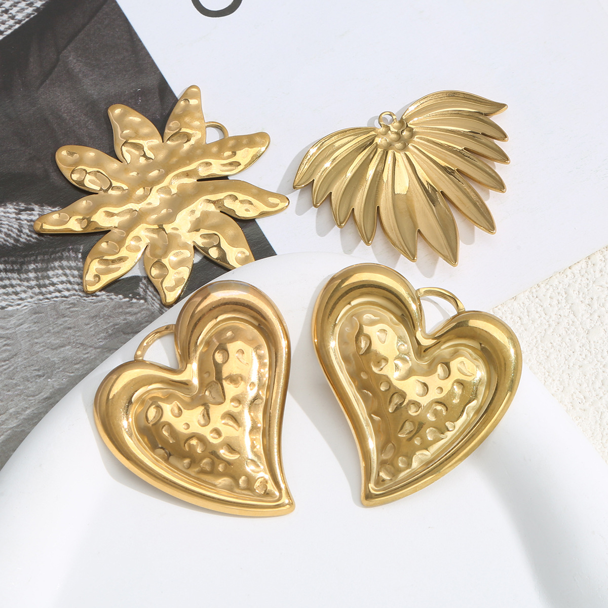 1:Golden leaves 44*362:Golden left heart3:Golden right heart4:Gold embossed leaves5:Golden u-shaped double-hole leaves6:Golden leaves 27*257:Golden fan8:Steel color leaves 44*369:Steel color left heart10:Steel color right heart11:Steel colored embossed leaves12:Steel color u-shaped double hole leaves13:Steel color leaves 27*2514:Steel color sector