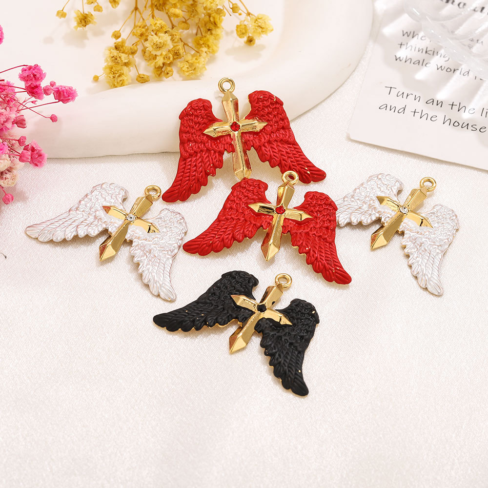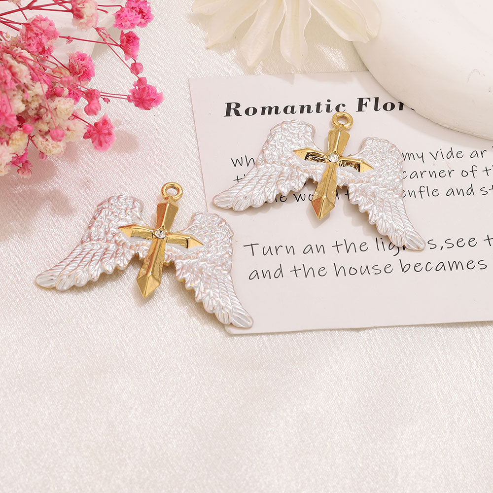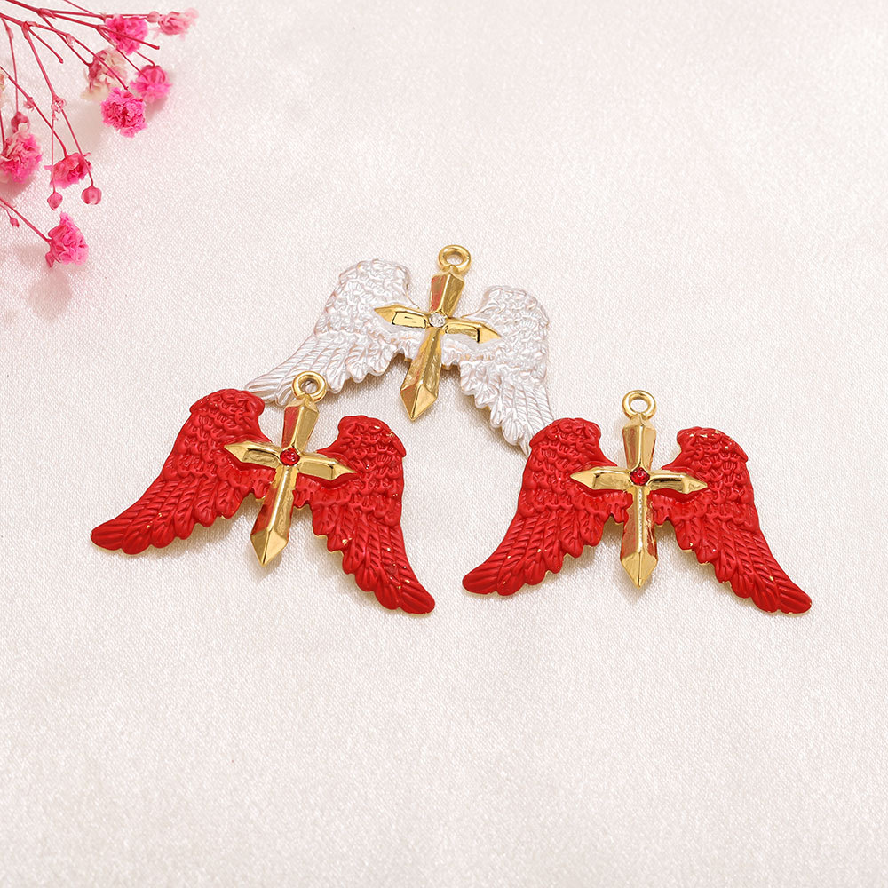 Stainless Steel Pendants 304 Stainless Steel Angel Wing Cross gold color plated DIY & enamel & with rhinestone Approx 2.3mm Sold By PC