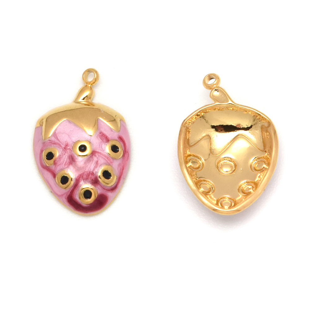 Stainless Steel Pendants 304 Stainless Steel Strawberry gold color plated DIY & enamel golden Sold By Bag