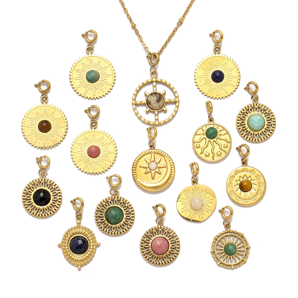 Stainless Steel Pendants 304 Stainless Steel with Gemstone Vacuum Ion Plating & DIY Sold By Bag