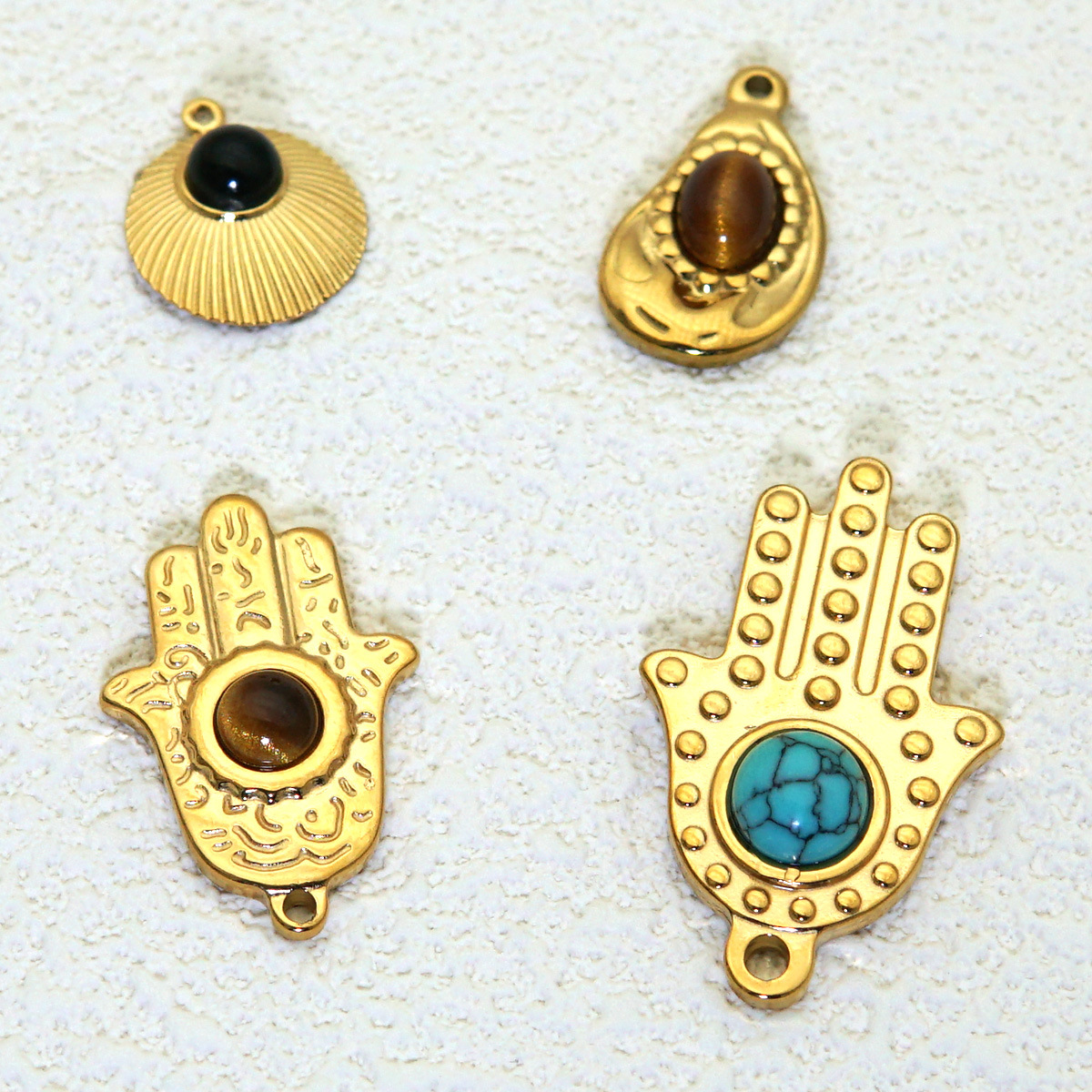 Stainless Steel Pendants 304 Stainless Steel with Gemstone Vacuum Ion Plating & DIY Sold By Bag