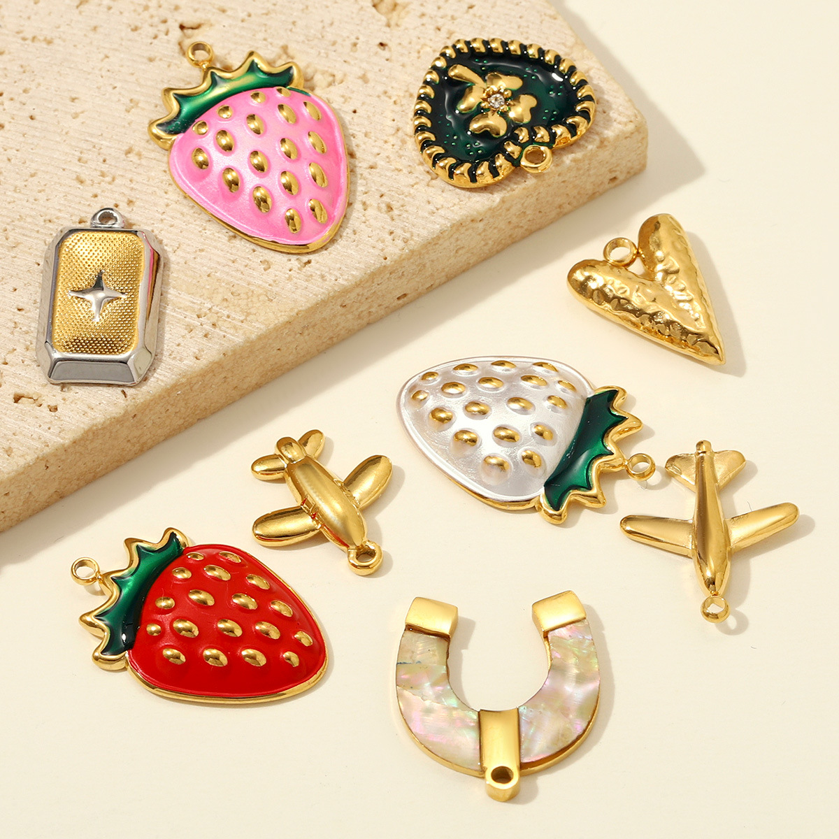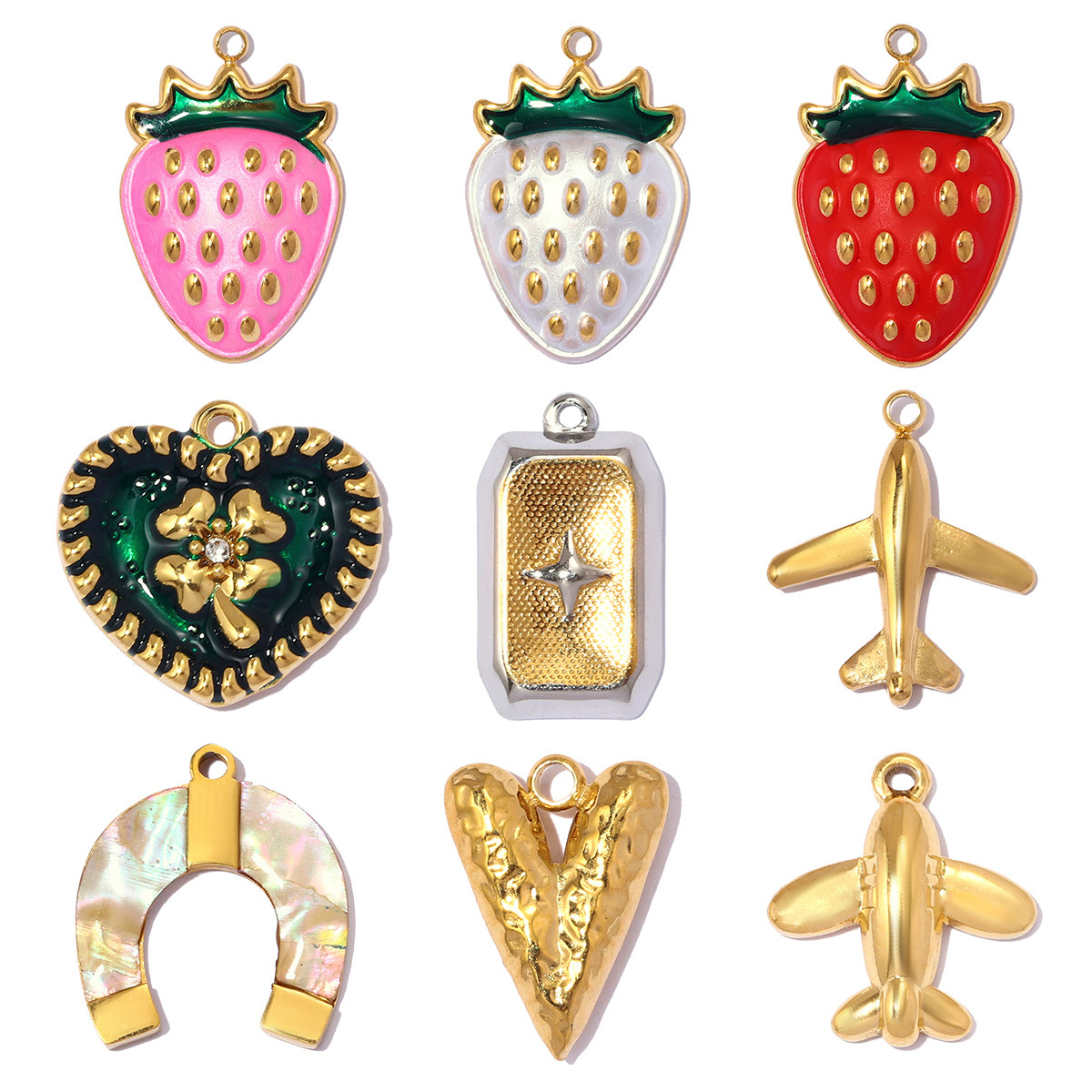 Stainless Steel Pendants 304 Stainless Steel with Shell plated DIY & enamel & with rhinestone Sold By Bag