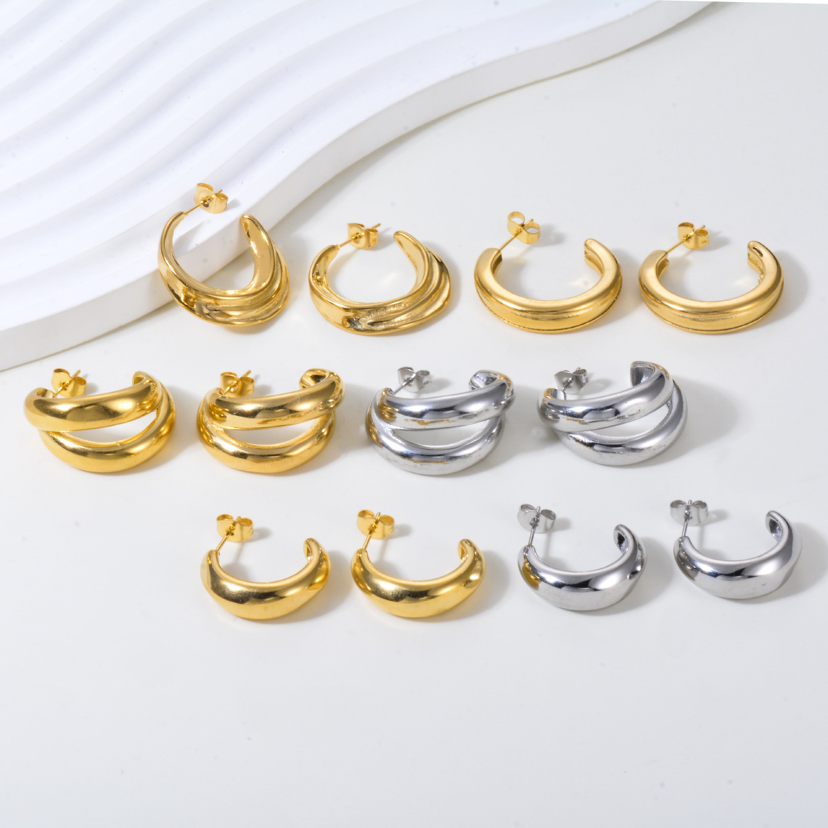 304 Stainless Steel Stud Earring, gold color plated, different styles for choice & for woman, Sold By Pair