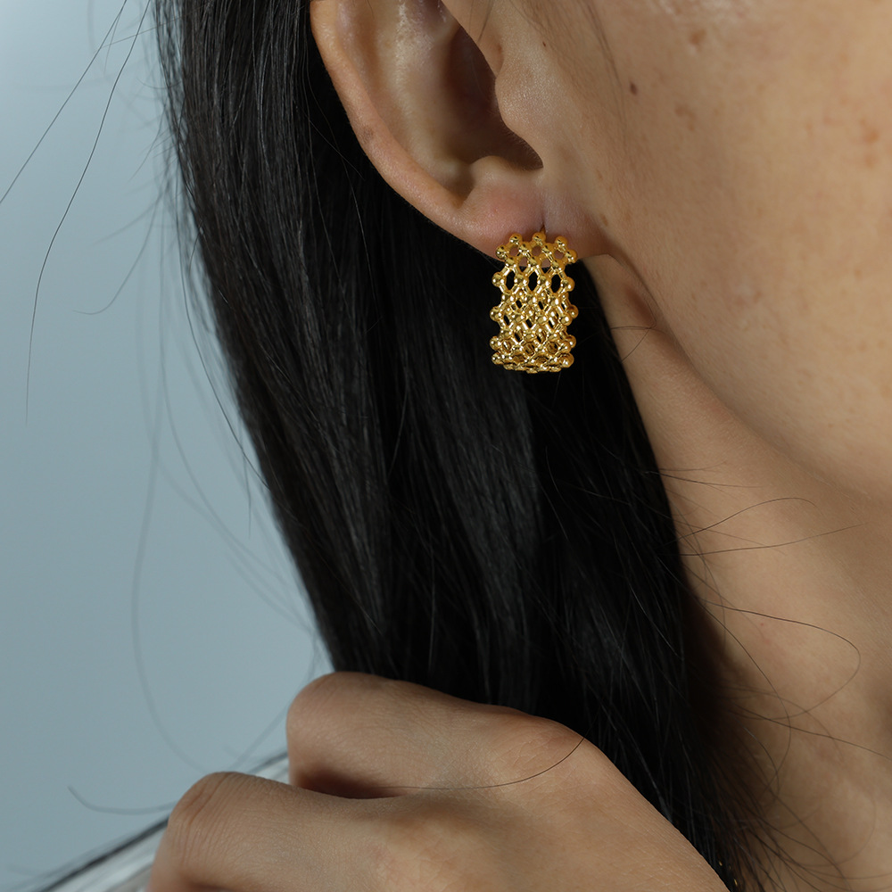 Stainless Steel Stud Earrings, 304 Stainless Steel, plated, fashion jewelry & for woman & hollow, golden, Sold By Pair