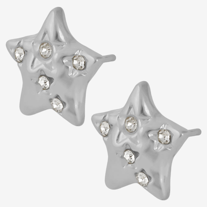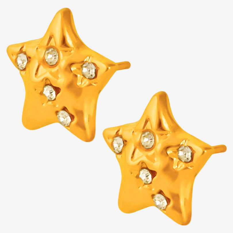 Stainless Steel Stud Earrings 304 Stainless Steel Star plated fashion jewelry & for woman & with rhinestone Sold By Pair