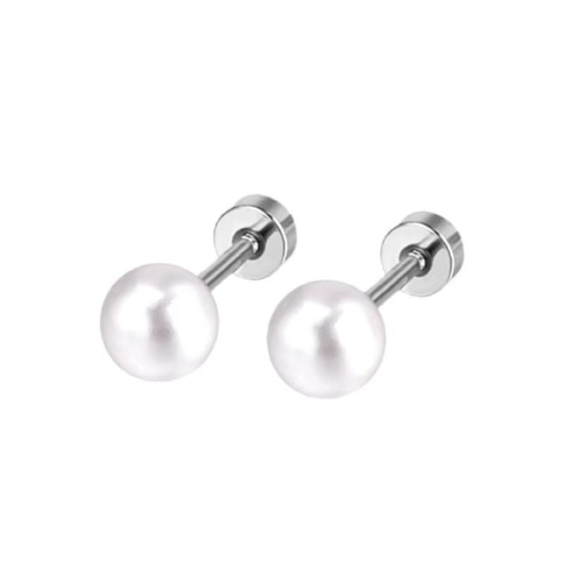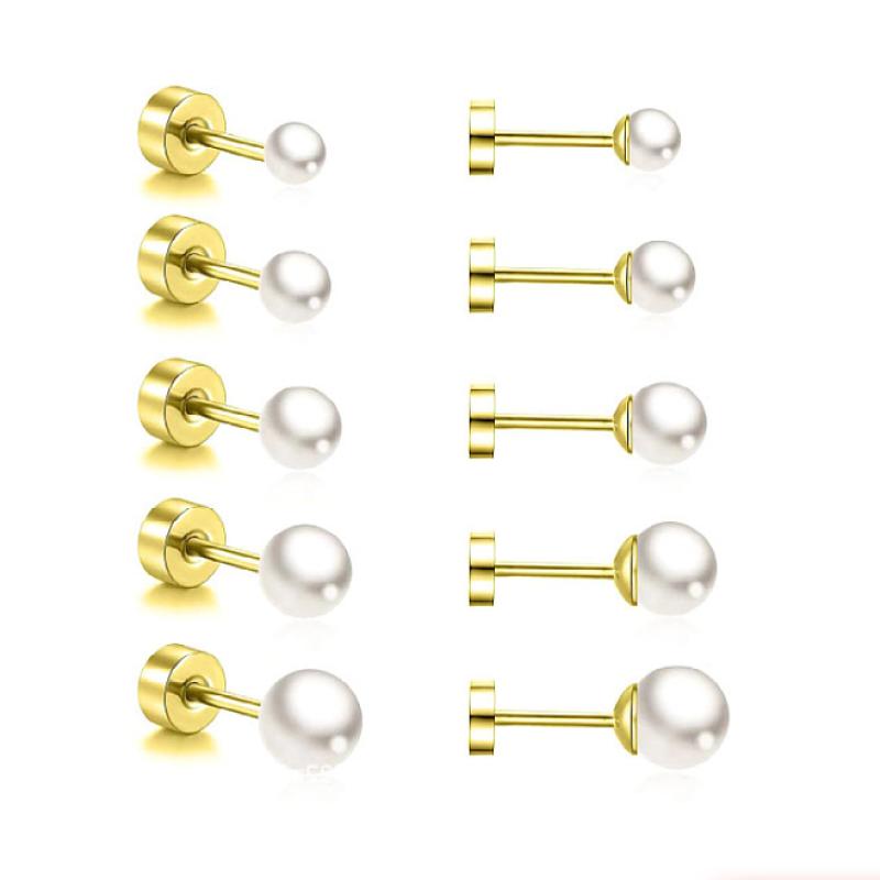 Stainless Steel Stud Earrings 304 Stainless Steel with Plastic Pearl plated fashion jewelry & for woman Sold By PC