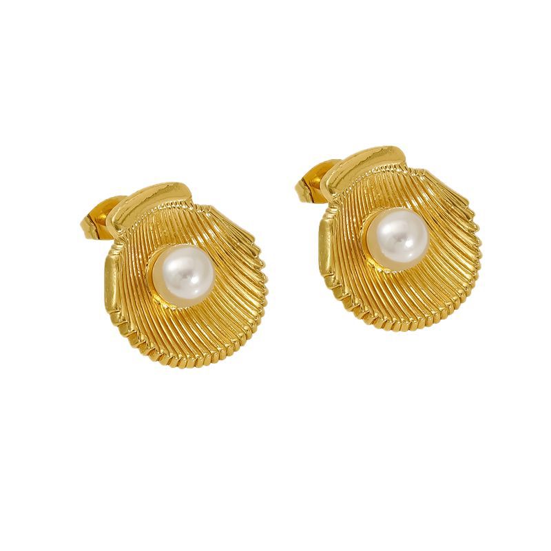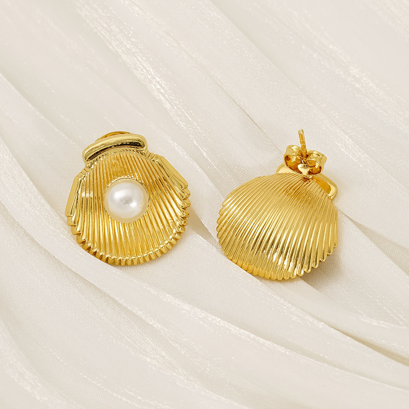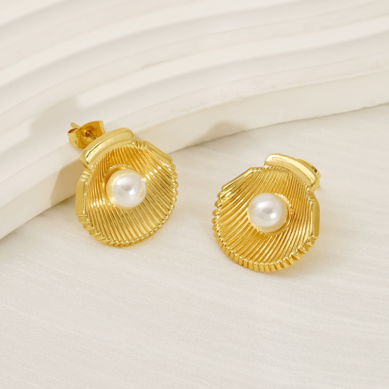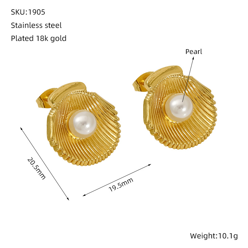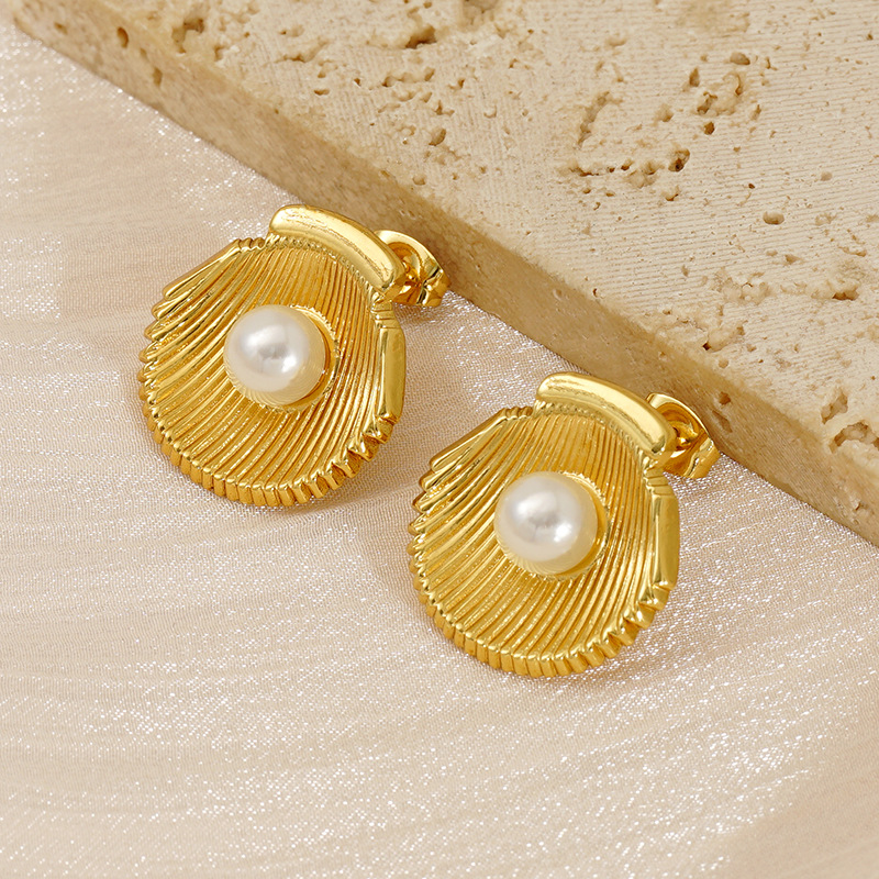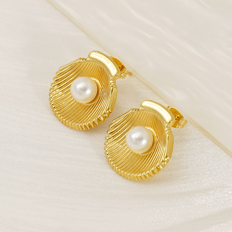 Stainless Steel Stud Earrings 304 Stainless Steel with Plastic Pearl 18K gold plated fashion jewelry & for woman Sold By Pair