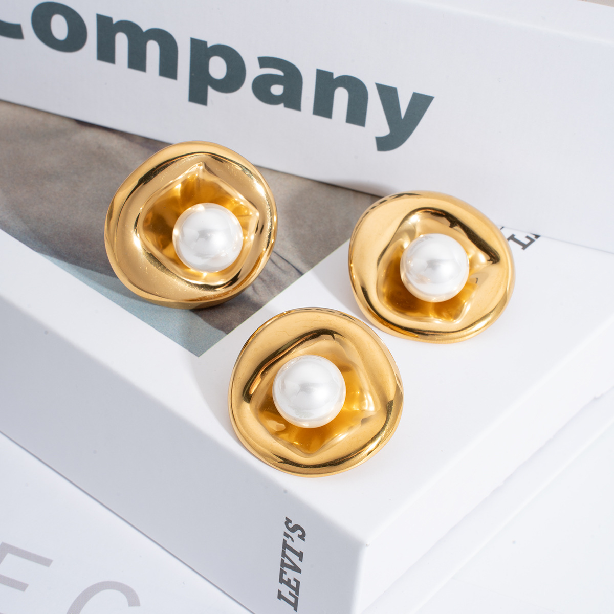Stainless Steel Stud Earrings 304 Stainless Steel with Plastic Pearl gold color plated fashion jewelry Sold By Pair