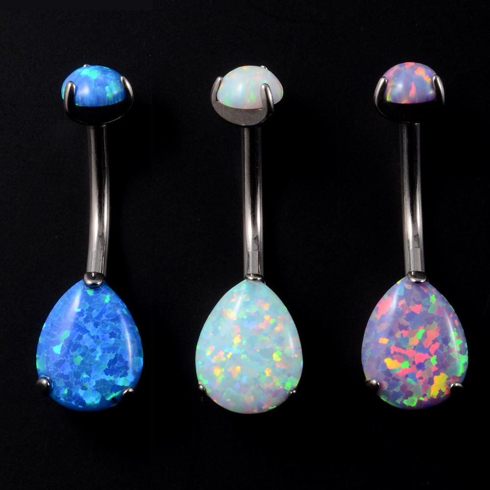 Titanium Alloy Belly Ring with Opal Unisex & with cubic zirconia Teardrop Sold By PC