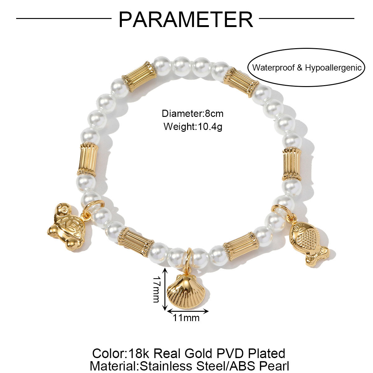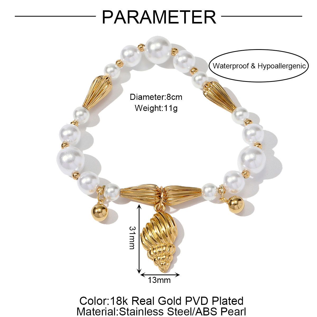 Titanium Steel Bracelet & Bangle ABS Plastic Pearl with Titanium Steel plated DIY Sold By PC